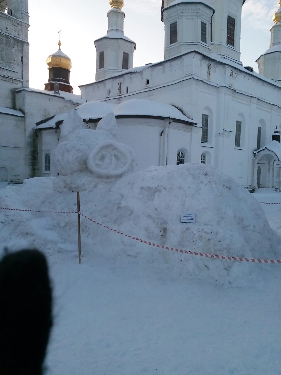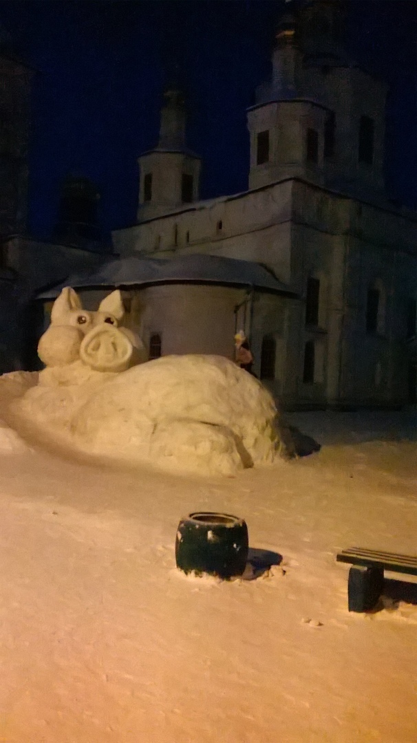 Нешуточные страсти разгорелись сегодня в социальной сети под одним из постов в городском паблике. Автор публикации возмущается тем, что возле Успенского собора была возведена снежная горка в виде свиньи – главного символа наступившего Нового года. По его мнению, скульптуре поросёнка там не место. Она оскорбляет православные традиции русского народа.