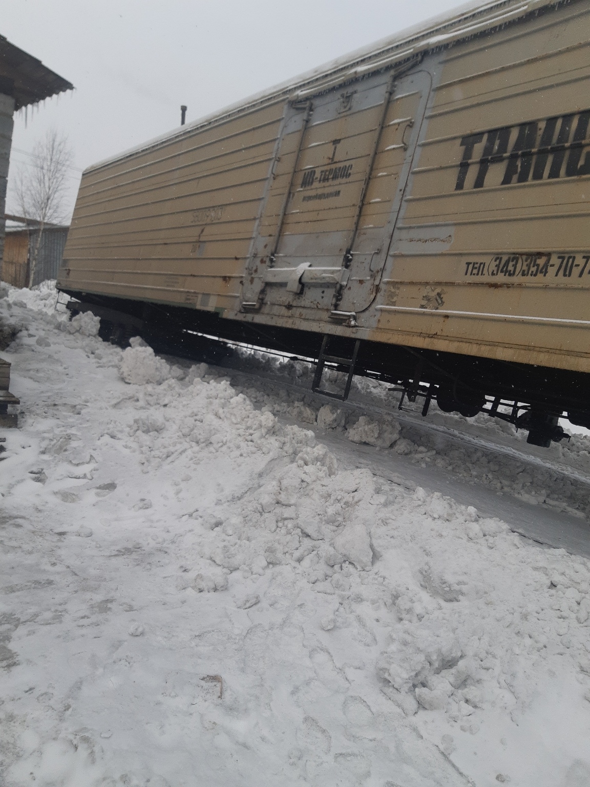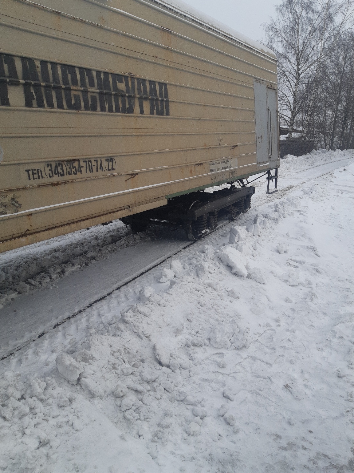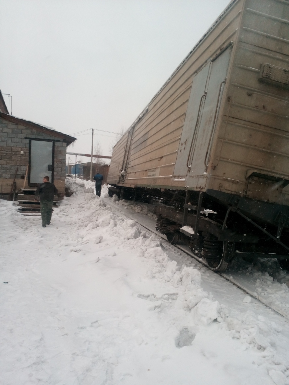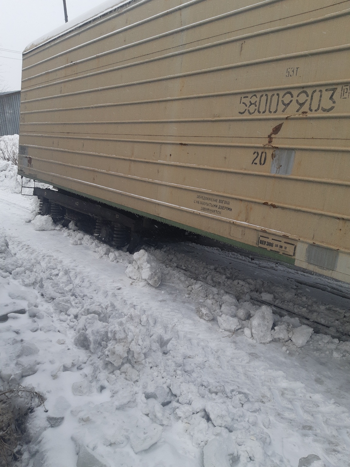 Соответствующая информация об этом появилась в Сети. По какой причине вагон сошёл с путей, и какой груз находился внутри пока неизвестно. По одной из неофициальных версий, это могло произойти из-за нерасчищенных рельсов и шквалистых порывов ветра.