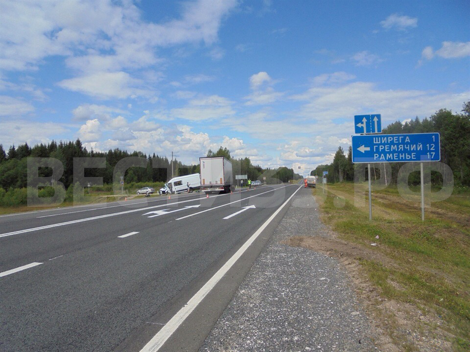 Как сообщает пресс-служба Упрдор «Холмогоры», водитель грузового автомобиля MAN, следуя по проблемному участку пути, где наносилась разметка, не предоставил преимущества встречному микроавтобусу «Мерседес». Уходя от столкновения, фура на скорости всё-таки задела иномарку. Произошло столкновение по касательной траектории. Внутри второго автомобиля на тот момент находилось 7 пассажиров и водитель.