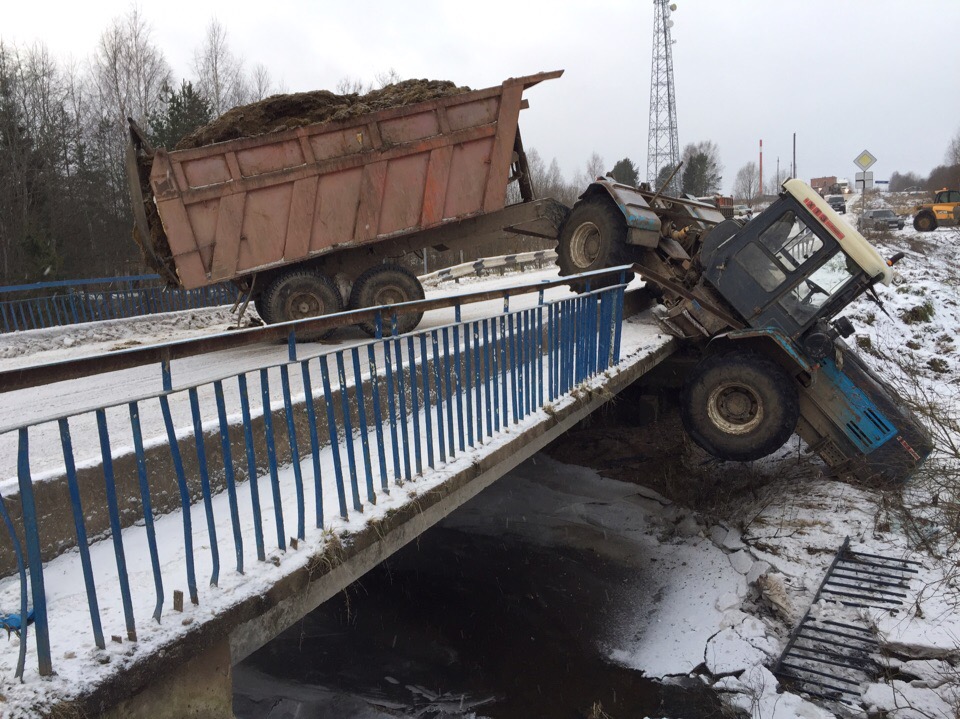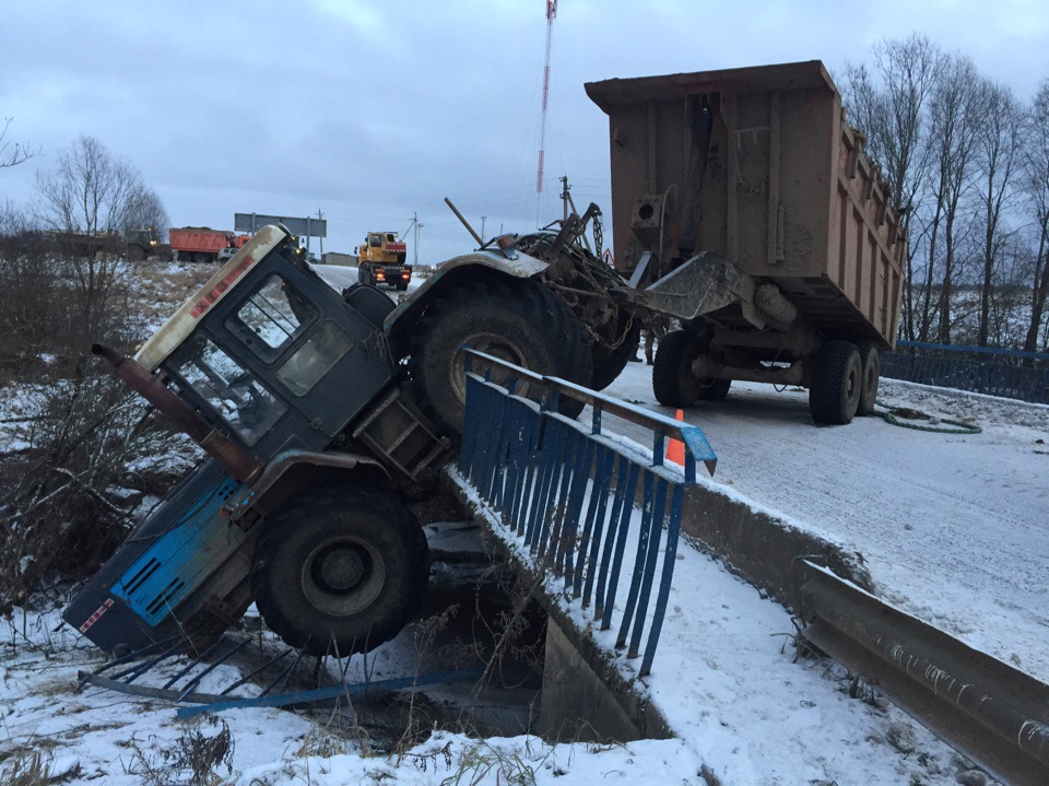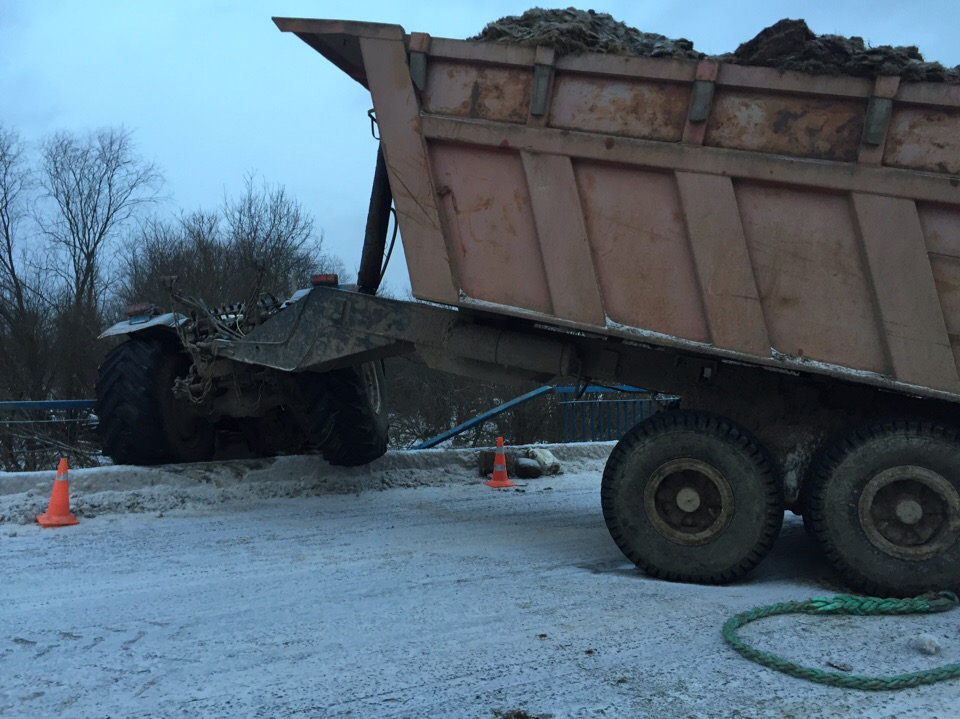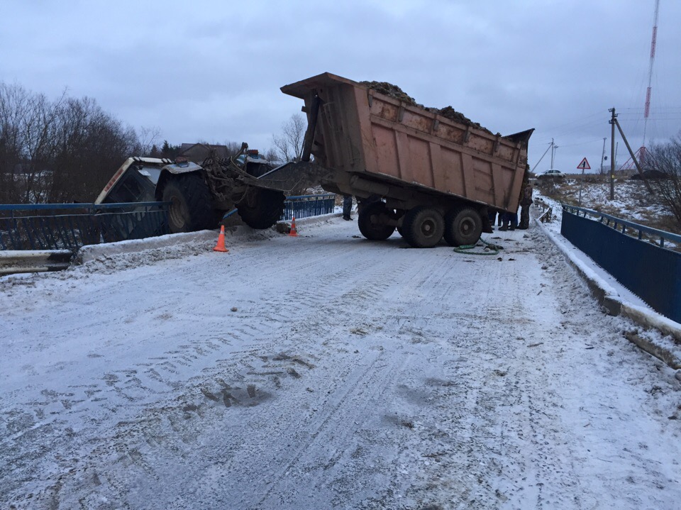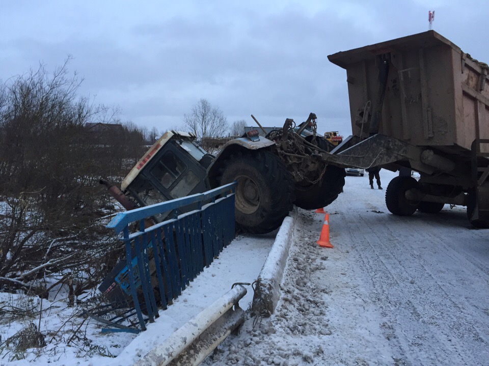 Авария произошла сегодня в 14:00. По информации областного УМВД, трактор «ХТЗ» с прицепом двигался по автодороге Семёнково – Заря. На 14 километре транспортное средство врезалось в ограждение и слетело моста. Прицеп остался на переправе.