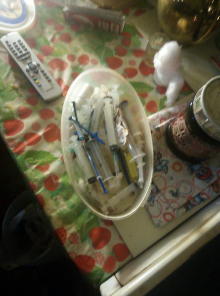 Во время обыска оперативники нашли банки с остатками буро-красного вещества, несколько использованных шприцев с похожим содержимым внутри. Также в квартире были обнаружены устройства для изготовления наркотиков. Криминалисты установили, что в шприцах и склянках находился дезоксикодеин. Общая масса изъятого наркотика составила почти 1,6 граммов.