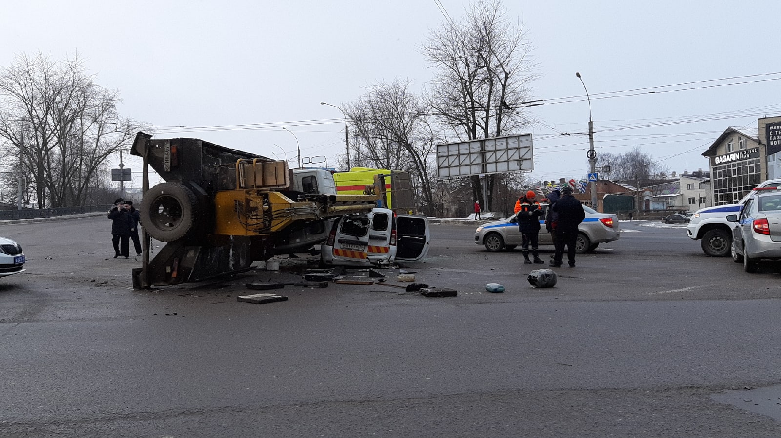В Вологде автомобильный кран опрокинулся на легковой автомобиль