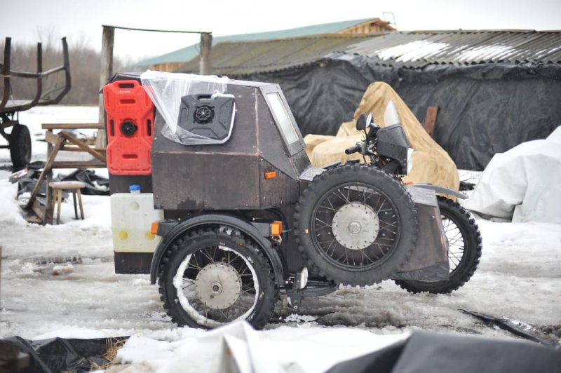 Перед поездкой молодой человек все предусмотрел и вместо обычной мотоколяски установил в транспортном средстве отапливаемый кузов для ночевок в морозы, а также взял с собой одежду с электрическим подогревом.