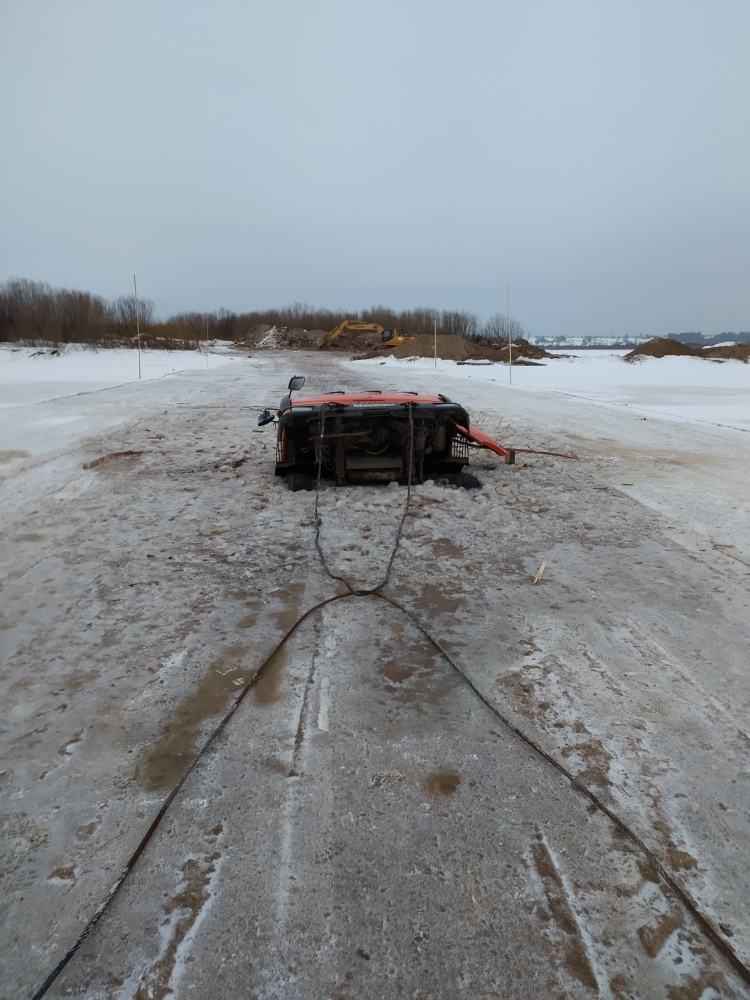 Сейчас ледовая переправа официально закрыта. Сегодня планируется извлечь КамАЗ из воды.