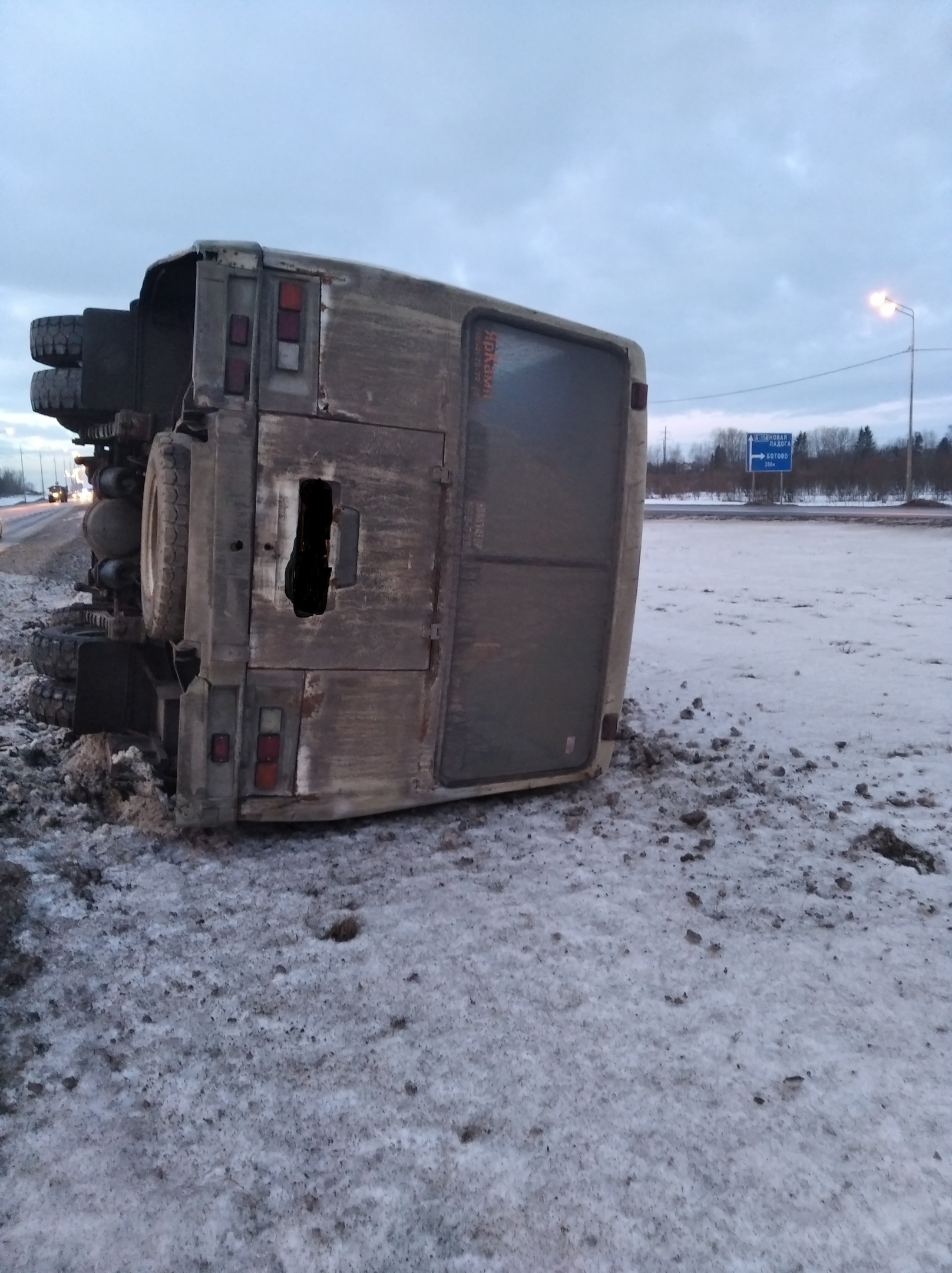 На трассе Вологда – Новая Ладога перевернулся пассажирский автобус