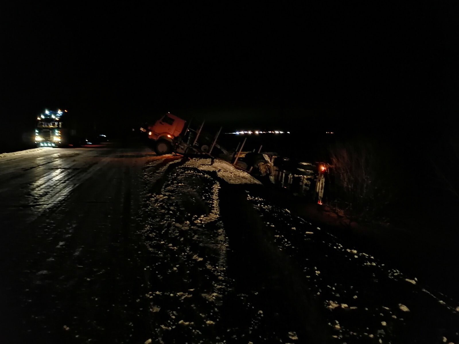 По предварительным данным, водитель «Тойоты» 1966 года рождения при встречном разъезде не справился с управлением. Иномарка врезалась в КамАЗ с прицепом, за рулем которого находился мужчина 1987 года рождения. После столкновения большегруз съехал в кювет.