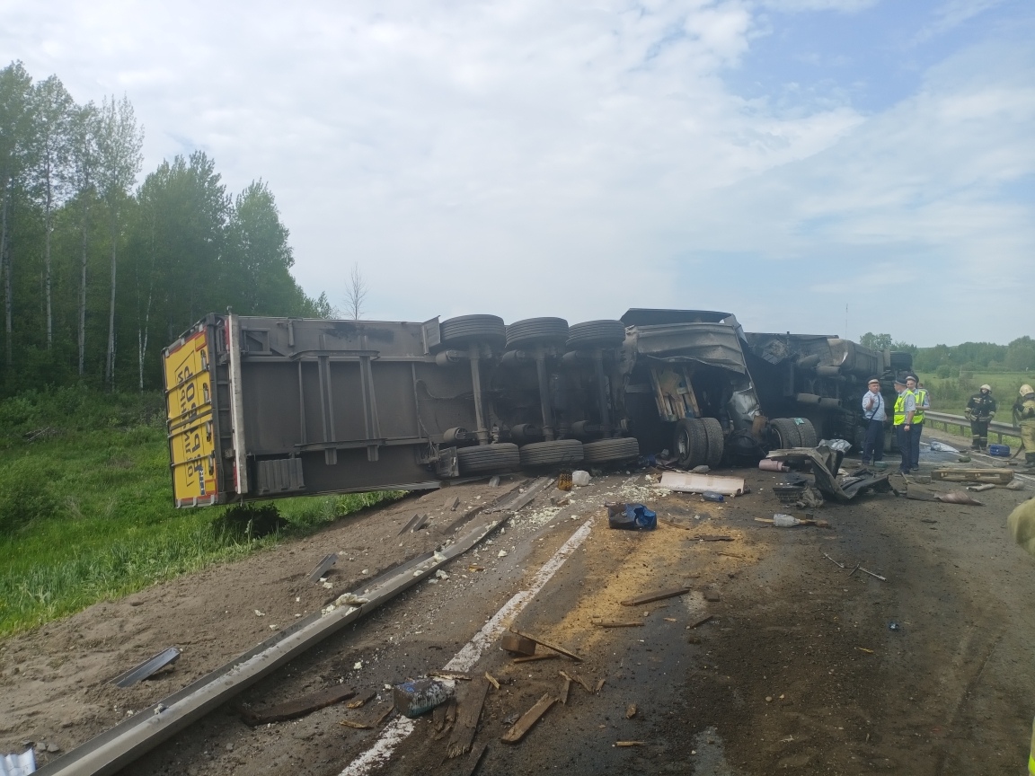 После столкновения фура опрокинулась и перегородила трассу. Движение по этому участку пути временно ограничено.