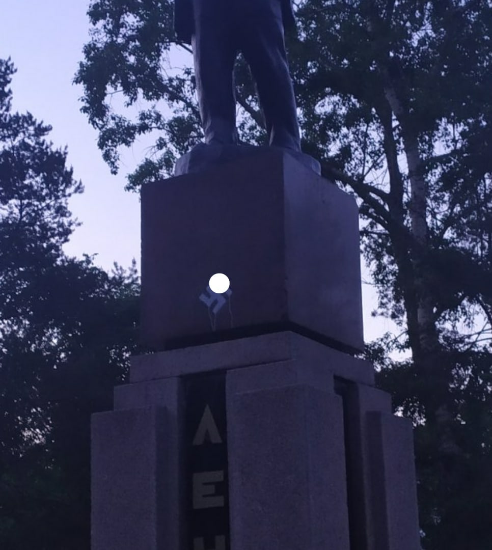 Неизвестные поместили на монумент трафаретное изображение свастики. Оно расположено на основании памятника вождю пролетариата. О правонарушении сообщили бдительные граждане. Люди вызвали полицию, был составлен протокол. Сейчас правоохранительные органы занимаются поисками злоумышленников, - рассказал у себя в соцсетях общественник Сергей Городишенин.