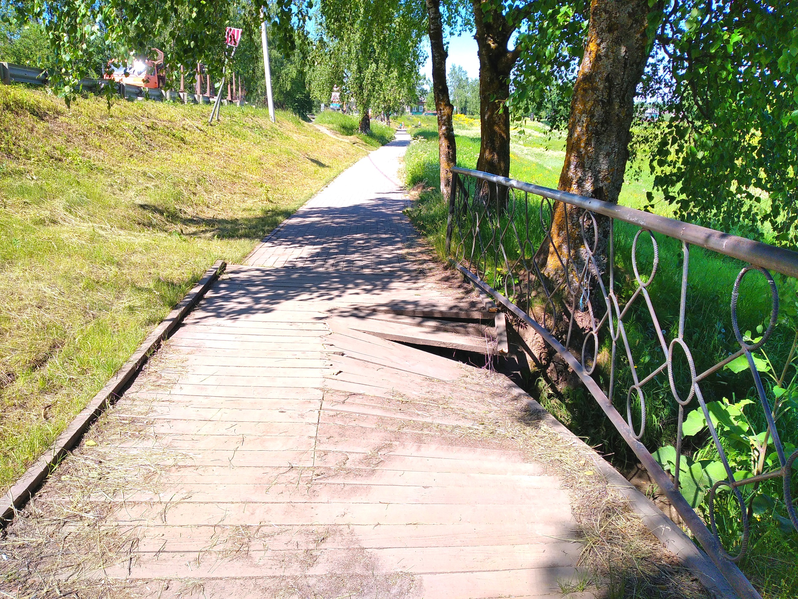 Спецтехника занималась уборкой городских территорий. Трактор, по всей видимости, прочищал и пешеходные зоны. Водитель, несмотря на габариты машины, решил проехать по деревянному пешеходному мосту на ул. Карла Маркса. Конструкция не выдержала веса трактора и сломалась. Сейчас мост представляет опасность для всех проходящих. Никаких предупреждающих знаков вокруг него не выставлено.