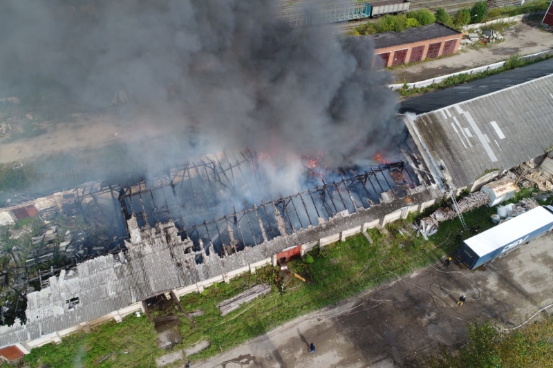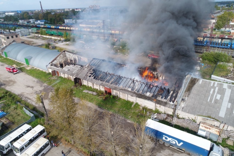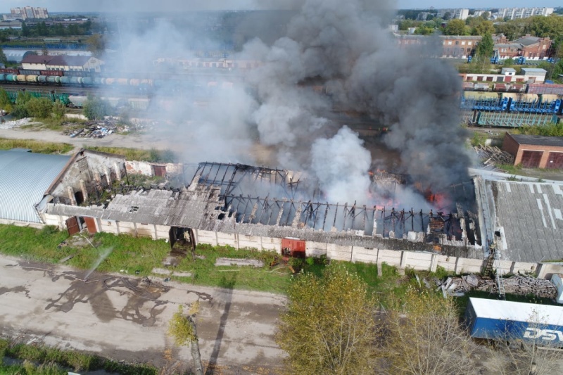 ЧП произошло на улице Ленинградский тупик, 10. Сообщение о возгорании поступило в 13.50. Дым от пожара наблюдали из центра города. Прибывшие на место сотрудники МЧС увидели открытое горение. Пламенем была охвачена крыша одного из складов.