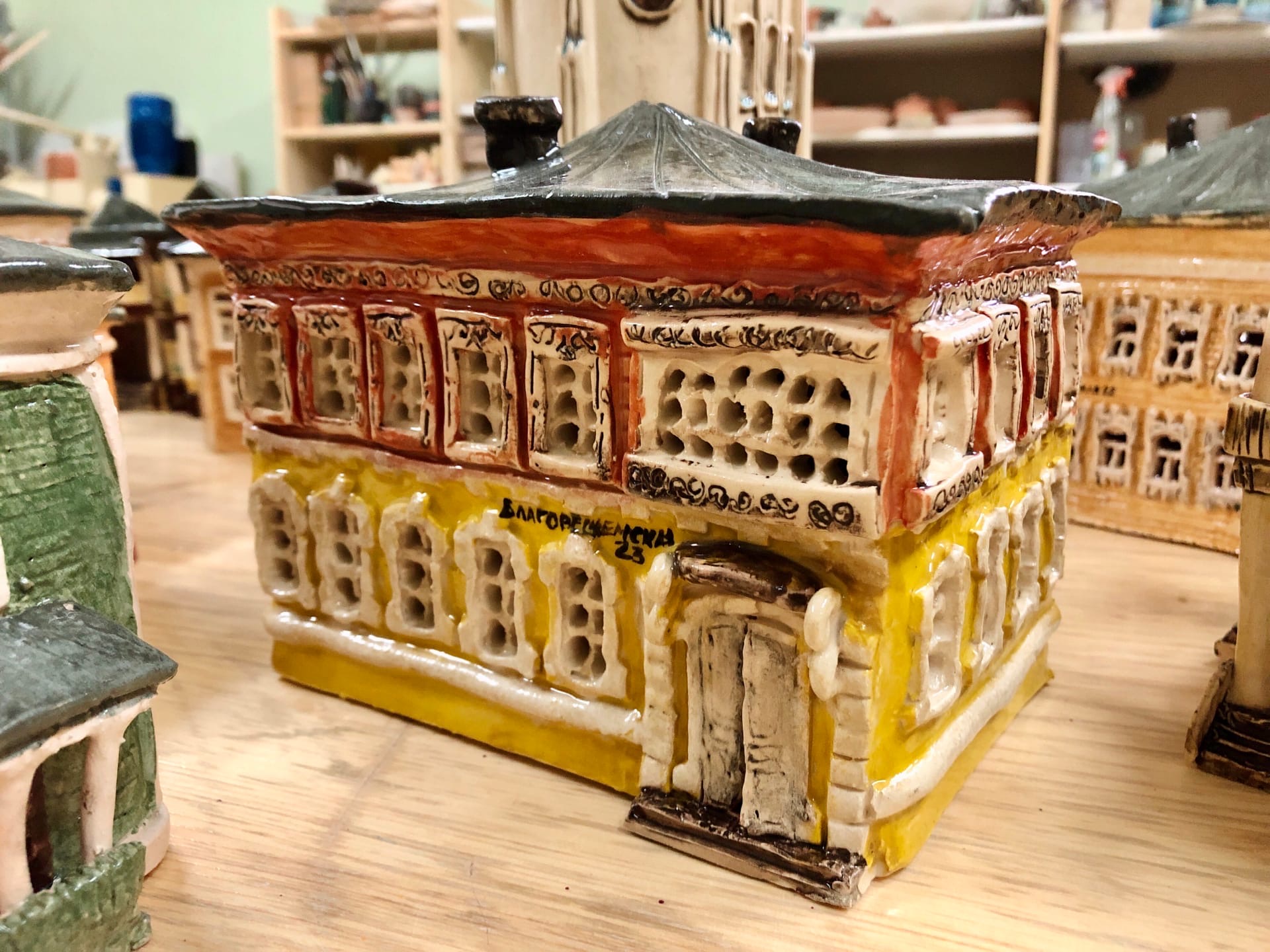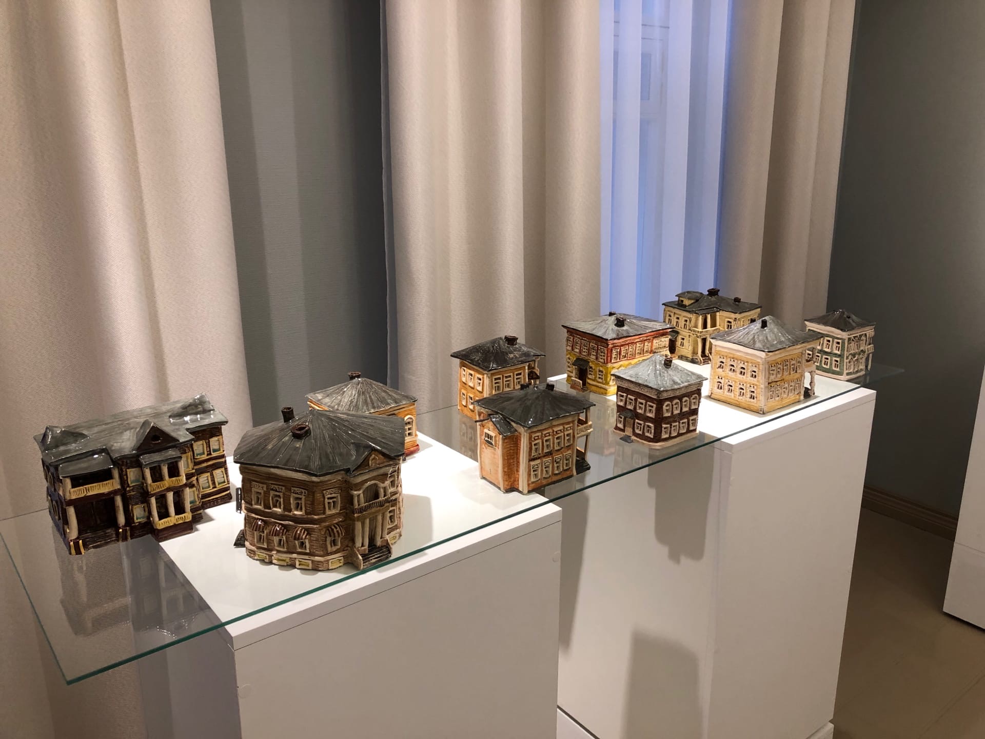 Новая выставка включает в себя объёмные экспозиции, посвящённые деревянному зодчеству Вологды. В каждом объекте экспозиции можно узнать дома и улицы города. Как рассказала керамистка, на лепку одного домика уходит до 4 недель.