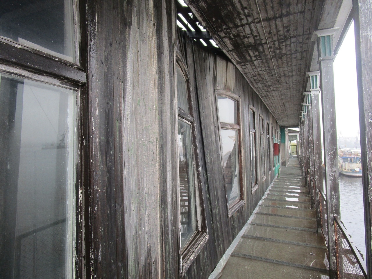 Самая большая плавучая платформа промышленного центра в который раз пытается уйти на покой. Насосы, откачивающие воду из трюма, не справились со своей задачей. Дебаркадер начал погружаться на дно реки.