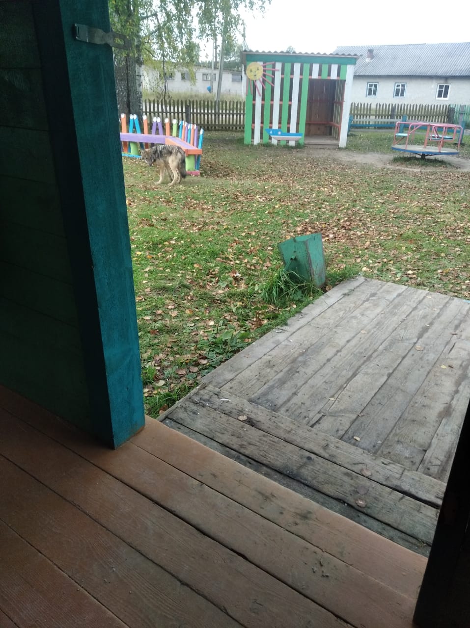Опасного зверя заметили в дневное время, когда на во дворе дошкольного учреждения никого не было. Волк некоторое время блуждал по площадке, а затем, по информации очевидцев, убежал в лес.