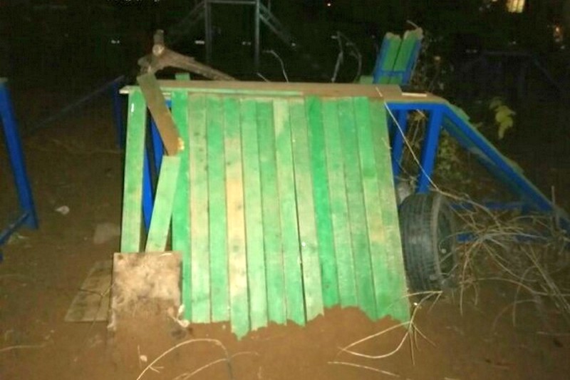 Местные жители жалуются, что площадку регулярно ломают. Правда, обычно это мелкие повреждения. Сейчас же площадка разрушена полностью. Сломаны барьеры и эстакада. Территория завалена бутылками, банками и досками с гвоздями.