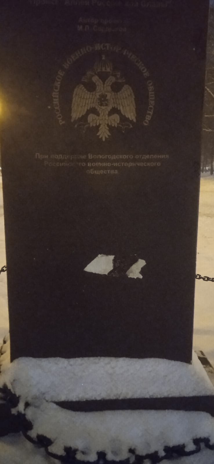 Накануне стало известно, что памятник частично привели в порядок раньше срока. В бюджете города осталась часть средств и их решили потратить на восстановление мемориала. На стеле появилась гранитная табличка. Она закрыла собой все изъяны с фронтальной стороны. Оставшиеся недочёты на постаменте будут исправлены при благоприятной погоде, - рассказала вологжанка Марина Репина, впервые обратившая внимание на эту ситуацию.