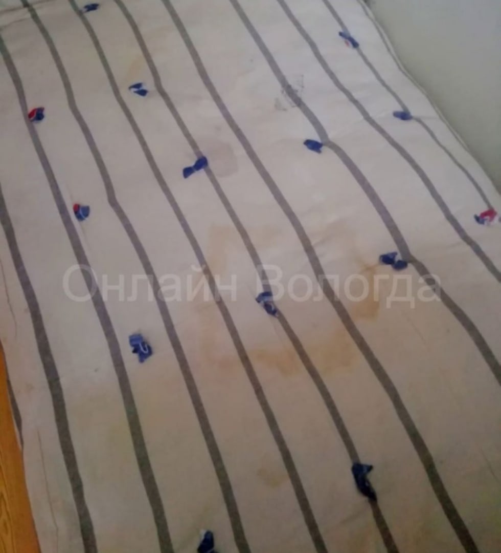 «Попала как будто в военное время. Окна старые обшарпанные деревянные. Везде сколы и трещины в стёклах. Зачем вставлять новое окно, если можно заклеить скотчем... Дует ужасно, голова мёрзнет. Батареи чернущие, ржавые, тепло вообще не держат. Нет ни штор ни чего. Тумбочки грязные старые, позорище. На кровати 3 матраца, а как будто спишь на полу, они как тряпки, болят ребра. Подушка вообще что-то с чем-то. Приходится одеяло подкладывать. На всю палату 2 розетки в которые фиг что поставишь, все шатается. Со стен отлетают куски штукатурки», - рассказала пациентка.
