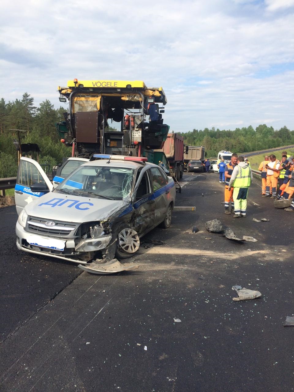 По имеющимся данным, 34-летний водитель «Опель Вектра» не справился с управлением. На скорости иномарка врезалась в служебный автомобиль ДПС «Лада Гранта». Затем от сильного удара «Опель Вектру» вынесло на встречную полосу, где она столкунлась с машиной «Шкода Рапид». Во второй иностранной легковушке находились водитель и пассажиры 1971 и 1996 годов рождения. В момент крутого виража автомобиль умудрился также задеть стоящий на дороге самосвал.