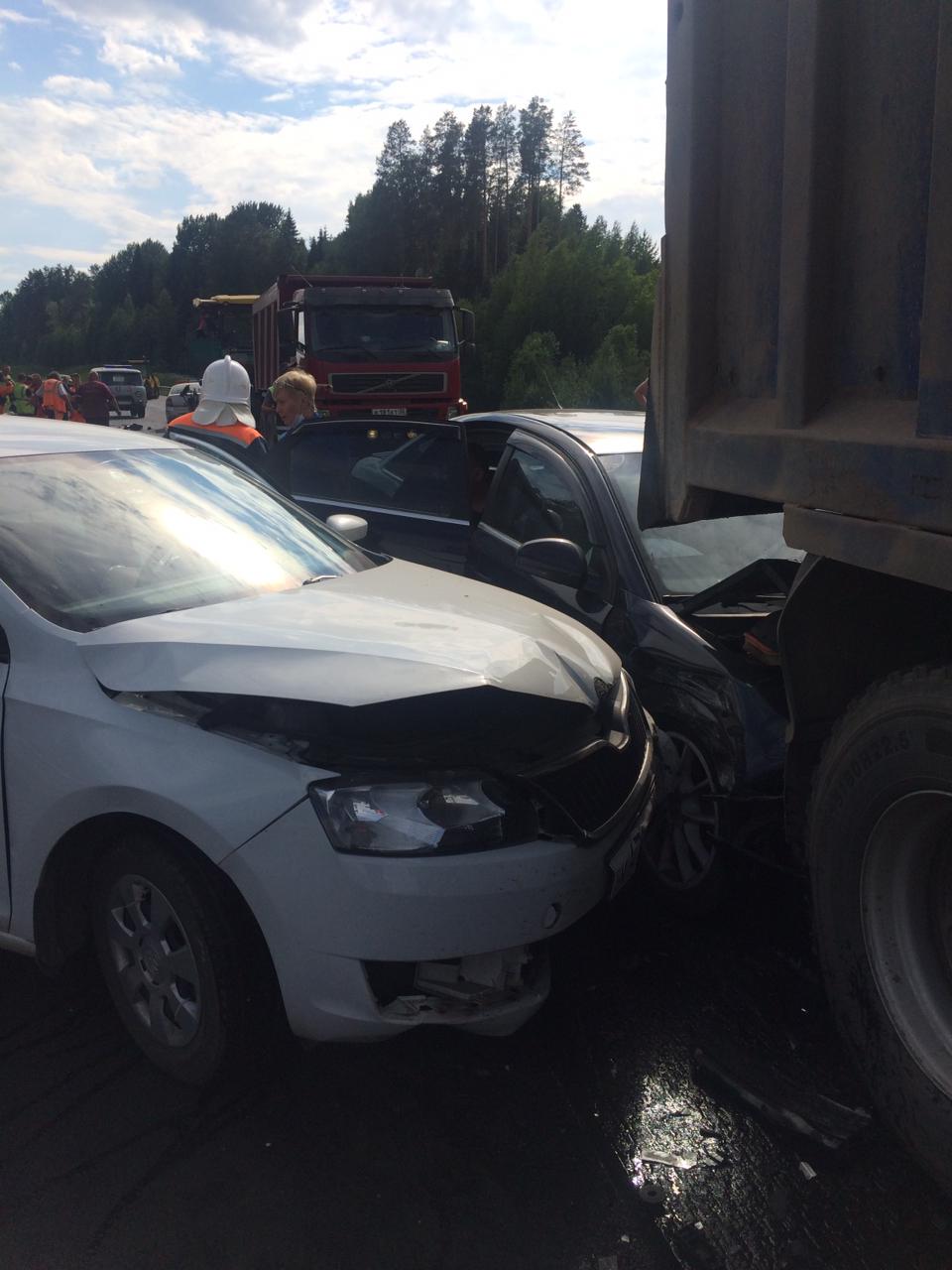Массовое ДТП под Вытегрой: столкнулись три "легковушки" и самосвал