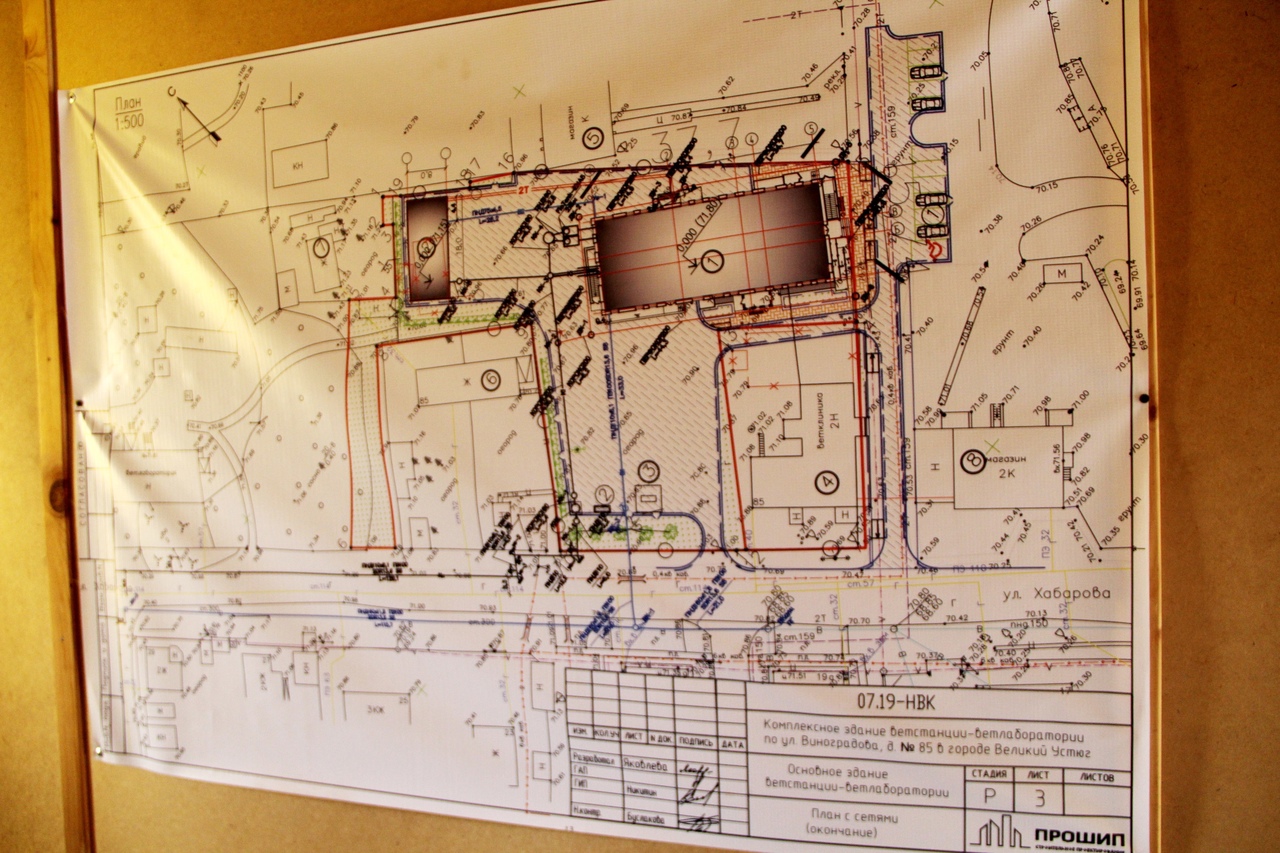 Решение создать комплексное здание ветстанции и ветлаборатории приняли в минувшем году. В настоящее время специалисты копают котлован. В дальнейшем на его месте возведут фундамент.  Как можно увидеть на фотографиях, участок огорожен забором, установлены вагончики для сотрудников подрядной организации, а также подготовлены строительные материалы. Объект планируют сдать к декабрю этого года. Об этом рассказал глава Великоустюгского района Александр Кузьмин на своей странице в социальной сети. Не исключено, что медучреждение начнёт свою работу уже в начале следующего года.