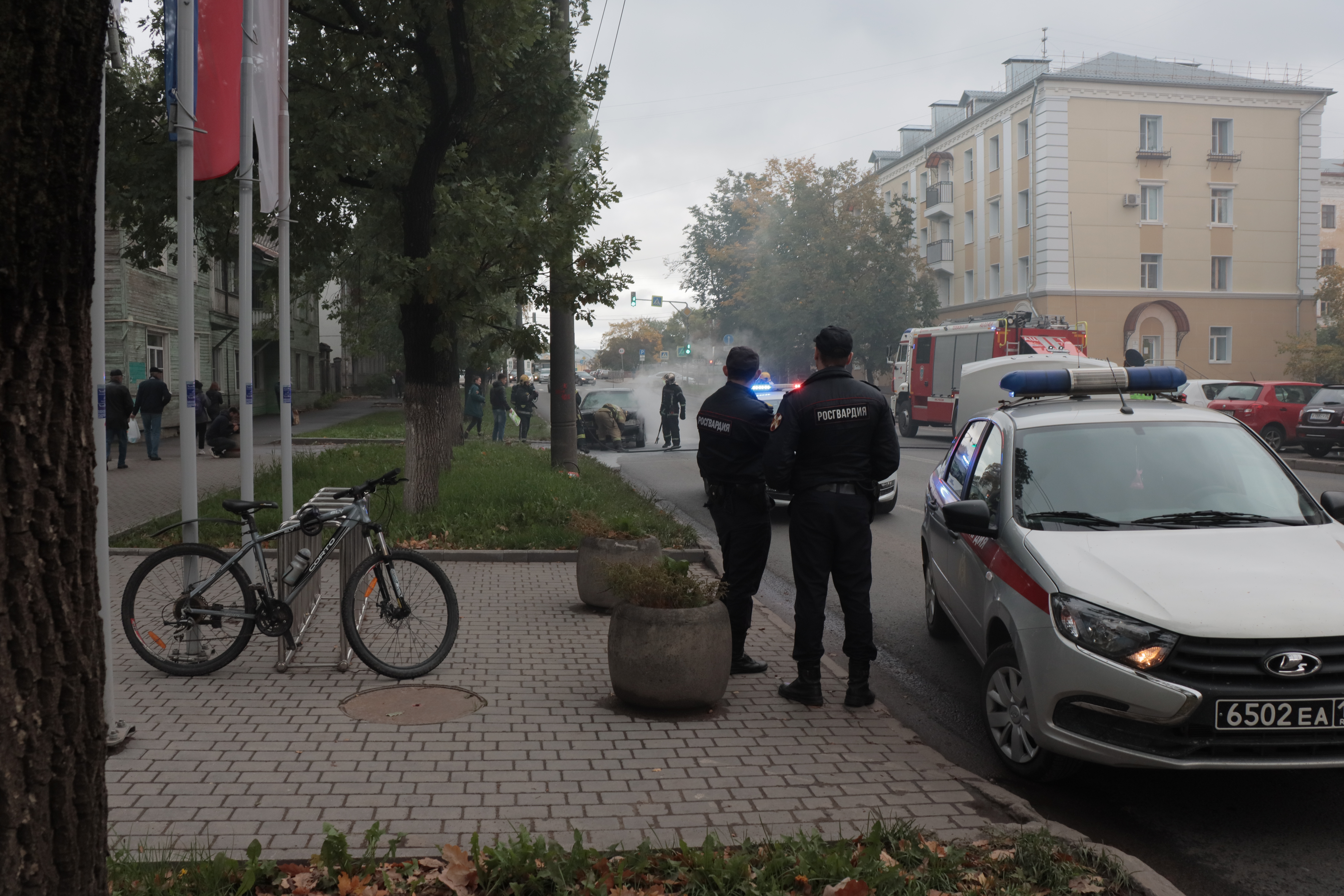 По данным, «Шкода Октавия» двигалась по проезжей части в сторону улицы Козлёнская. За рулём находился мужчина. В это время по какой-то причине моторный отсек машины загорелся и из-под капота повалил сильный дым. Водитель сразу же остановился и вызвал спасателей. Пока они ехали, мужчина пытался справиться с пламенем с помощью огнетушителя.