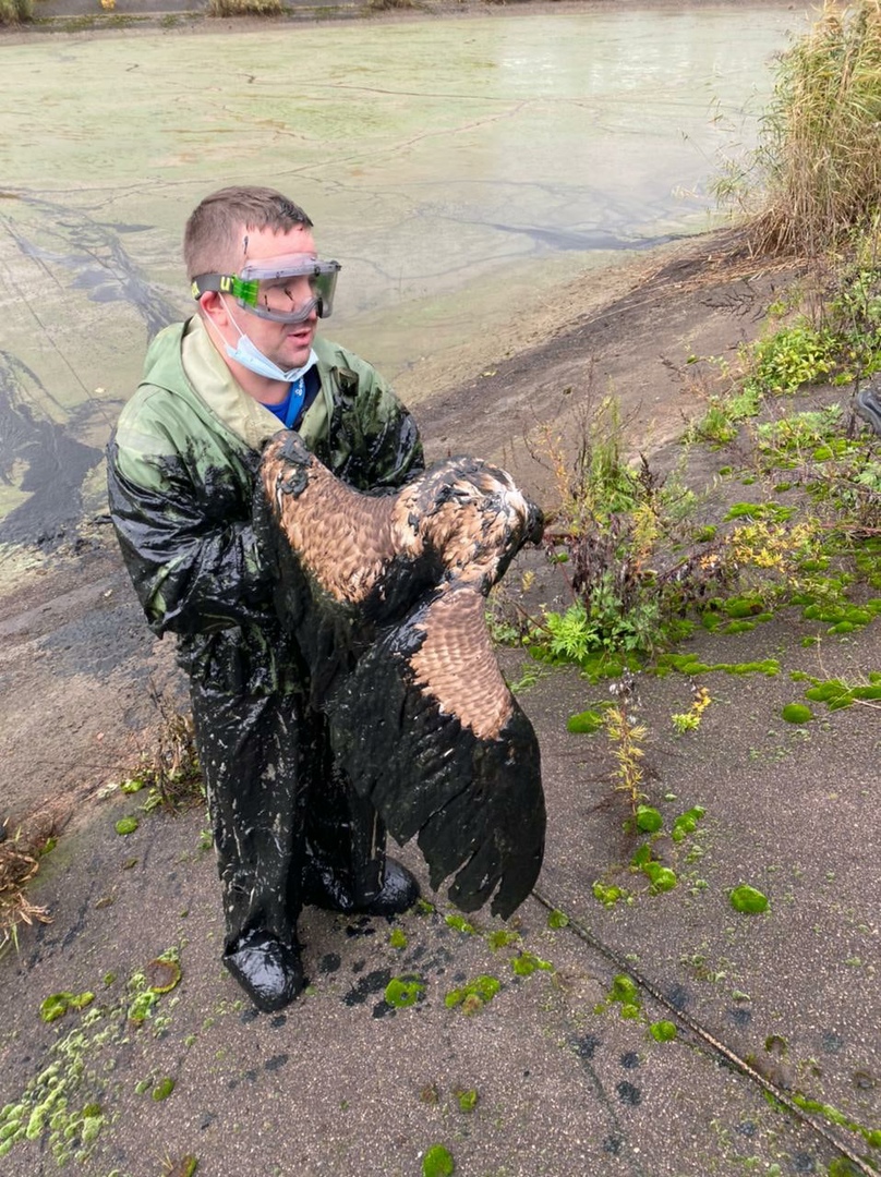 Инцидент случился в промышленном центре накануне днем. Представитель подрядной организации увидел в пруду-усреднителе сточных вод птицу. Она из последних сил барахталась в иловом осадке. Мужчина, рискуя своей жизнью, пробрался к потерпевшему и спас его. Специалисты Дарвинского заповедника сообщили, что птица является молодым орланом-белохвостом. Хищник занесен в Красную книгу.