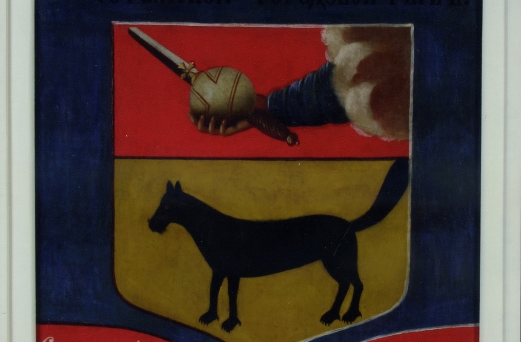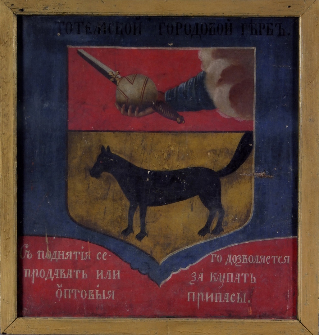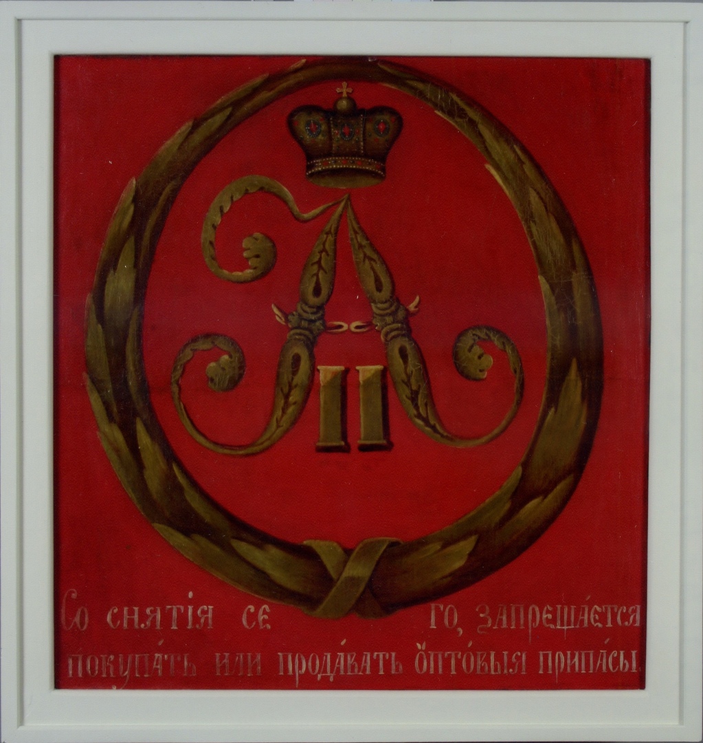 Предмет истории входит в музейную коллекцию «Живопись. Графика». Его автором является неизвестный художник. Работа представляет собой двустороннюю картину, на одной из них изображён герб, на другой - вензель правящего на тот момент времени императора Александра II. Полотно поступило в музей в 1924 году. До этого оно находилось в здании Тотемской городской управы.