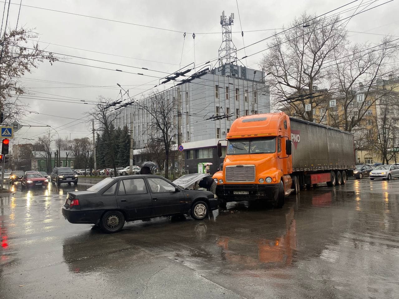 Дорожно-транспортное происшествие случилось сегодня в областном центре около полудня. На перекрестке улиц Герцена-Зосимовская столкнулись, по предварительной версии, «Деу Нексия» и большегруз. Кто кому не уступил дорогу – предстоит разобраться сотрудникам ГИБДД. Отметим, что перекрёсток регулируемый. О пострадавших не сообщается.