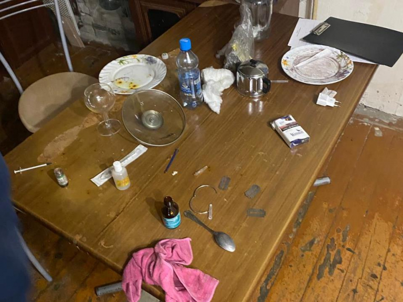 При обысках в квартире найдены склянки с остатками буро-красного «зелья», шприцы, а также различные приспособления для изготовления наркотиков. Экспертиза показала, что вещество, обнаруженное в квартире, является синтетическим наркотиком.