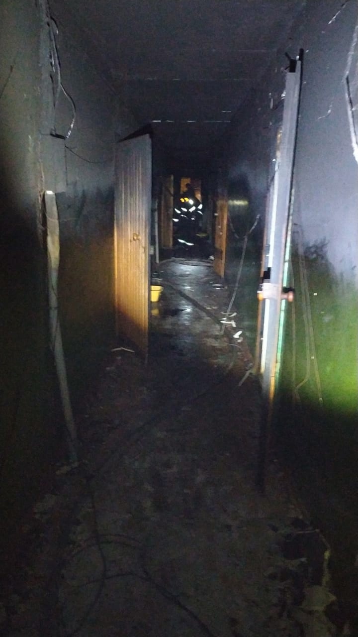 На место выезжали 14 единиц техники и 38 человек личного состава. Пожар случился в комнате на 8 этаже. Площадь возгорания составила 22 квадратных метра. Помещение выгорело по всей площади. Кроме того, частично закопчены еще 2 комнаты и коридор.