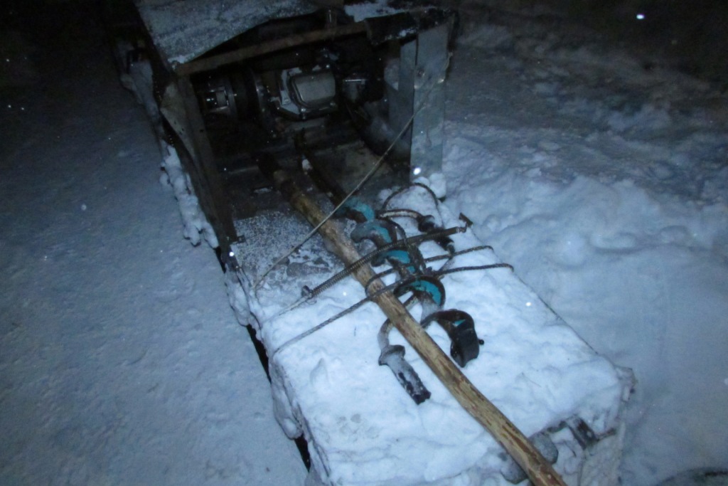 Местные сотрудники патрульно-постовой службы во время дежурства в районе прибрежной зоны реки Конома обратили внимание на мужчину с подозрительным грузом. Он ехал на мотобуксировщике с санями. В спецтранспорте лежали большой свёрток.