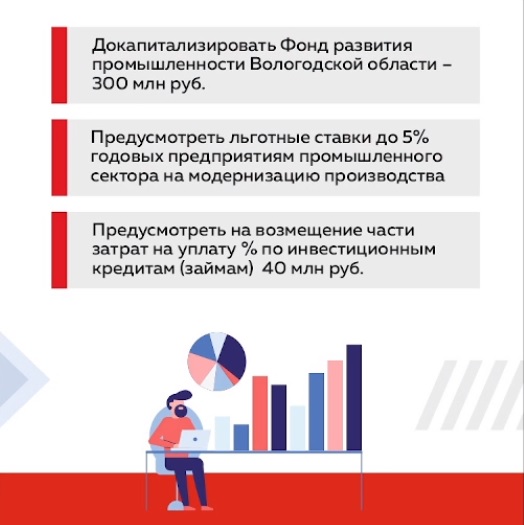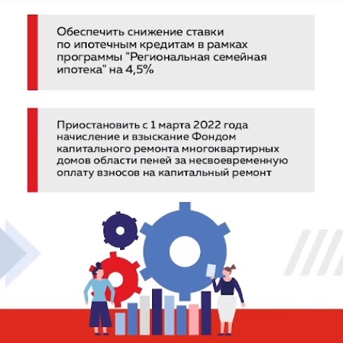 Что касается предприятий, вынужденных сократить персонал из-за санкций: вологжанам помогут временно трудоустроиться. В части ипотечного кредитования также приняты меры поддержки. Так, в рамках программы «Региональная семейная ипотека» ставка снизится не на 3%, а на 4,5%. Все выдвинутые предложения были поддержаны губернатором. В ближайшее время начнется их реализация. Подробнее о принятых мерах поддержки в карточках ниже.