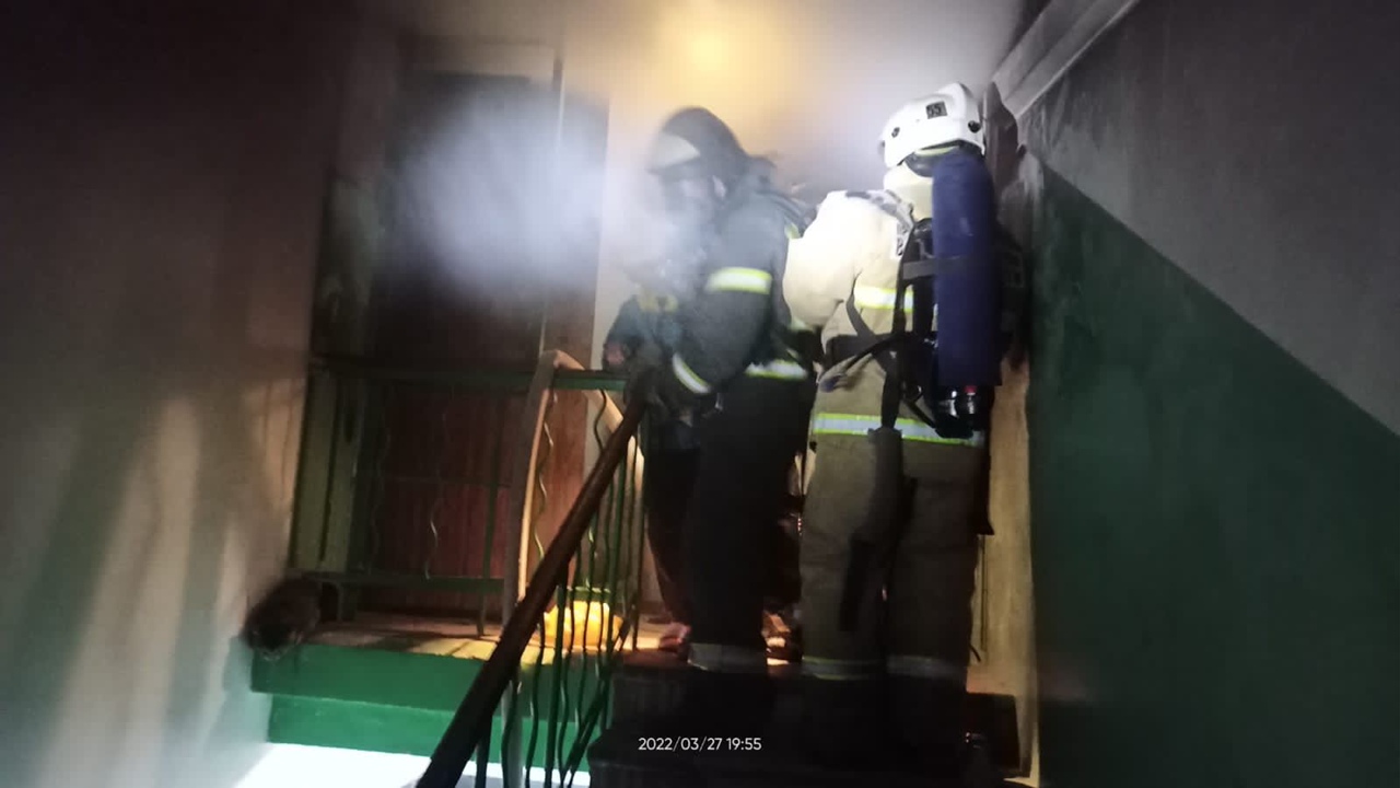 Общая площадь возгорания составила 15 квадратных метров. Сгорел диван, личные вещи. Квартира и лестничная площадке на 5 этаже полностью закопчены. До прибытия пожарных 20 человек самостоятельно покинули свои квартиры, еще четверых, в том числе двоих детей вывели спасатели.