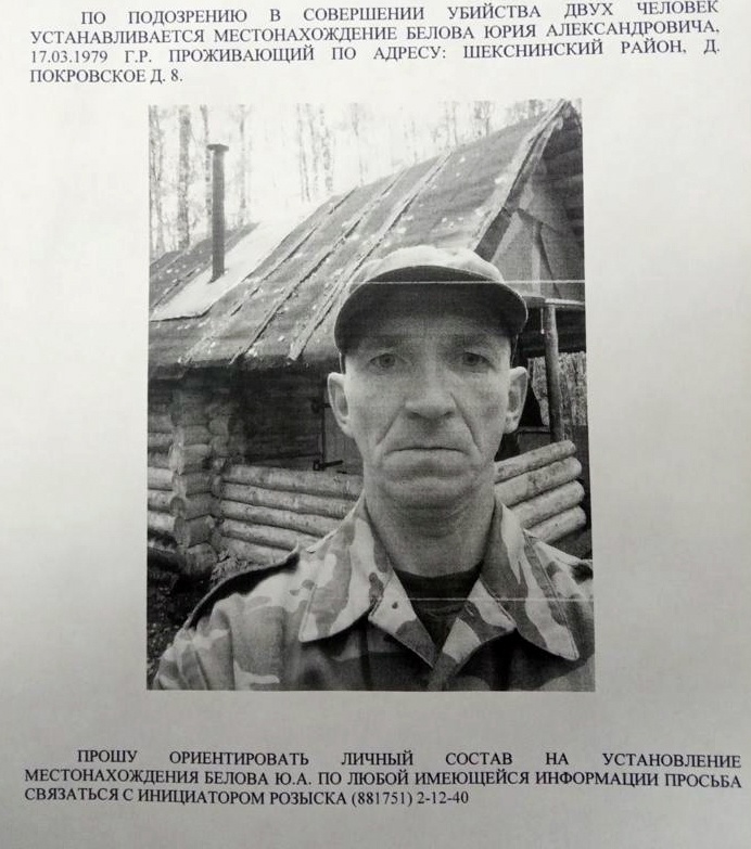 Свидетели сообщали, что несколькими днями ранее в деревне видели гражданина, накануне задержанного в Череповце. Он находился там в компании ещё одного мужчины. Задержанного доставили в Железнодорожное сельское поселение и там он признался, что убийство совершил его друг.