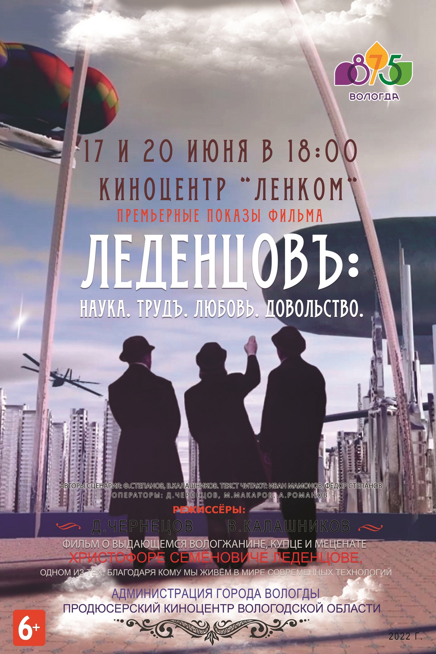 17 и 20 июня в 18 кинотеатре «Ленком» состоится бесплатный показ фильма «Леденцовъ: Наука. Трудъ. Любовь. Довольство», посвящённый выдающемуся вологжанину и знаменитому меценату Христофору Семёновичу Леденцову. В 2022 году исполняется 180 лет со дня его рождения. Кинокартина создана по инициативе администрации Вологды именно к этой дате.