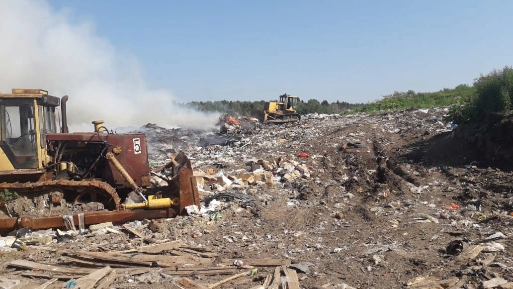 Серьёзный пожар произошёл на мусорном полигоне под Грязовцем