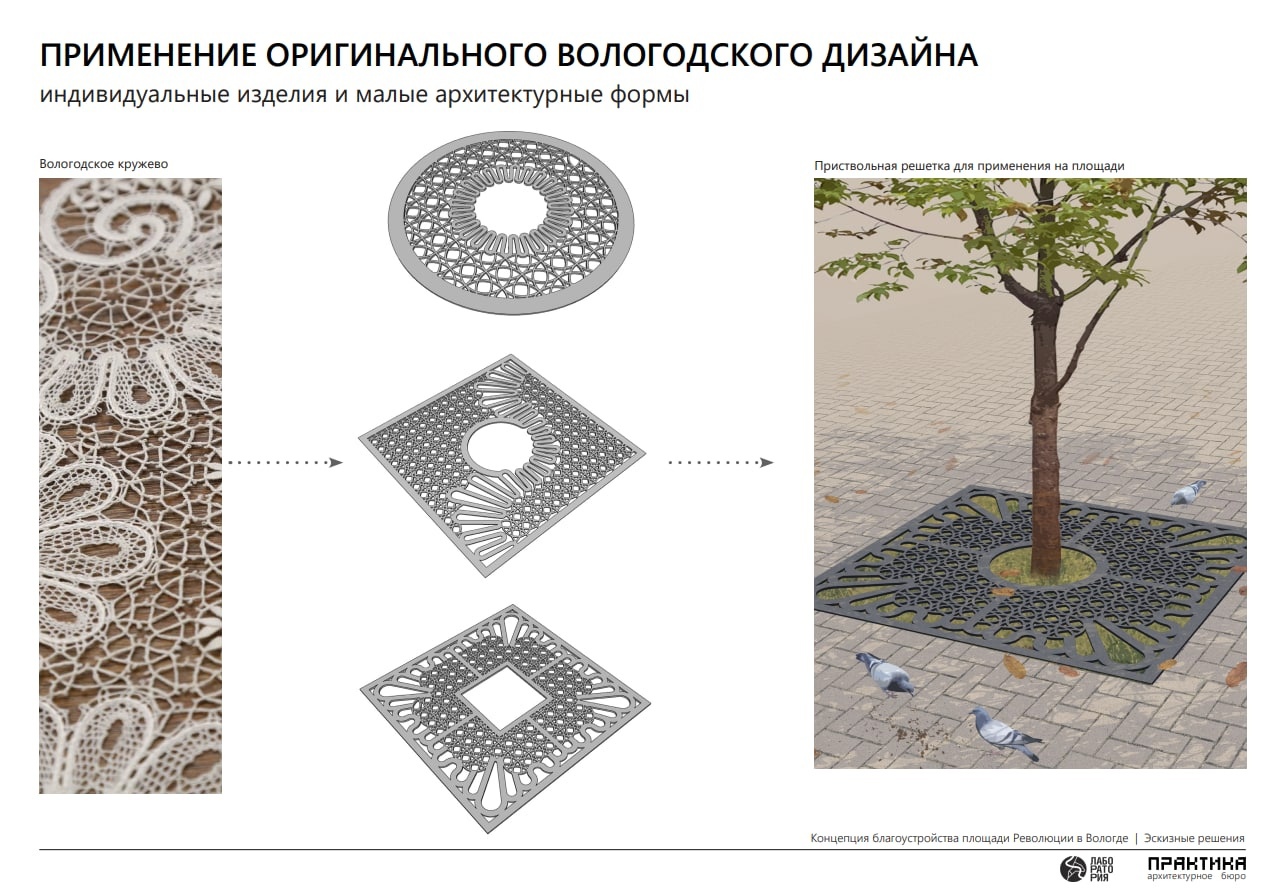 Также оборудуют центральную аллею и зону детских площадок с современным игровым оборудованием. Место, где установлен памятник Ленину, превратится в многофункциональные павильоны. Стоит отметить, что малые архитектурные формы будут выполнены с применением оригинального вологодского дизайна – кружева.