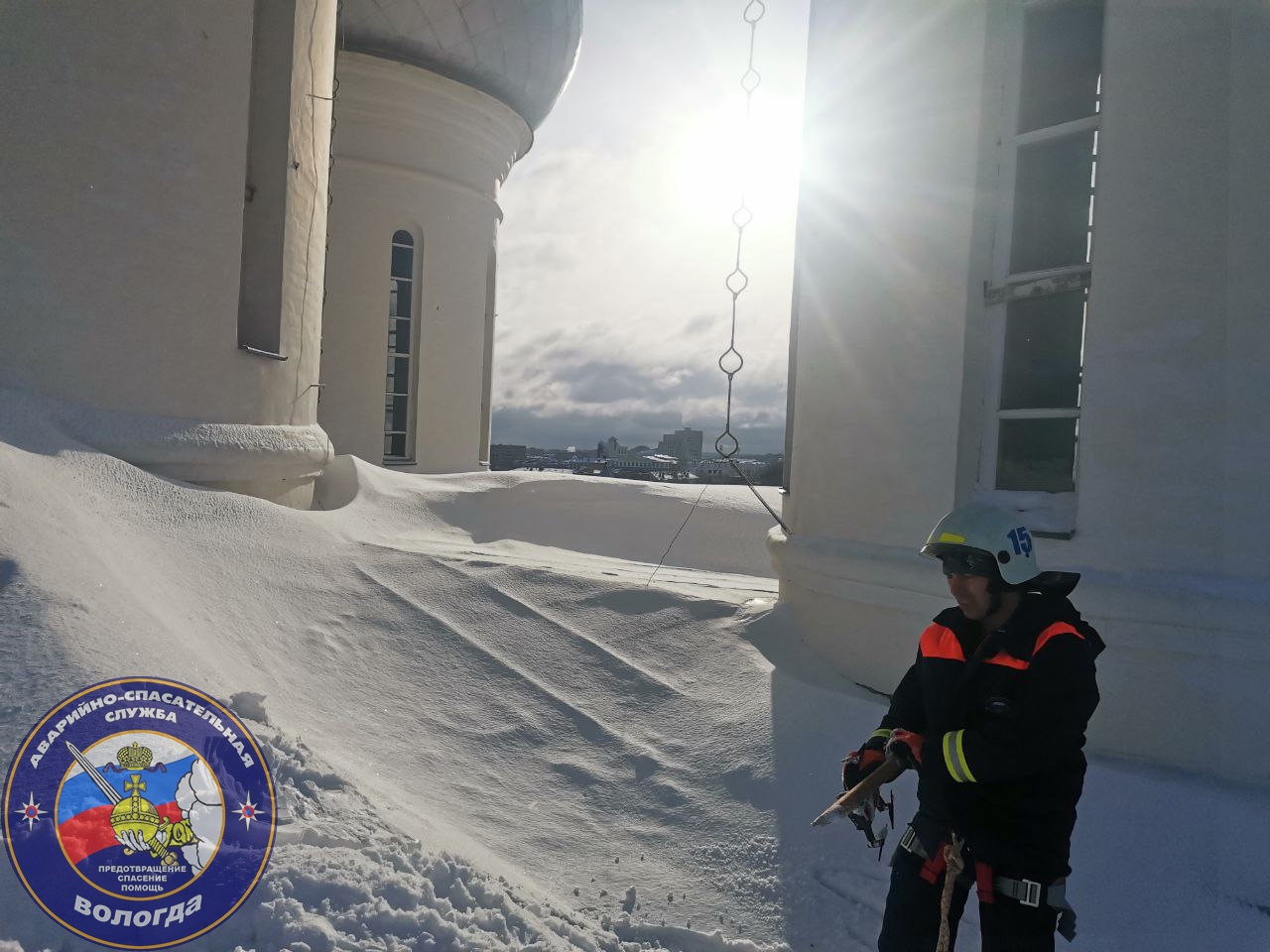 В диспетчерскую АСС города Вологды поступил вызов. Звонившие попросили снять квадрокоптер с крыши, но не с обычной, а с крыши Софийского собора. Специалисты прибыли на место с альпинистским снаряжением. Спасатели поднялись по крутой лестнице в стене Собора к выходу на крышу, закрепив страховку вышли на крышу. В итоге технику вызволили из плена.