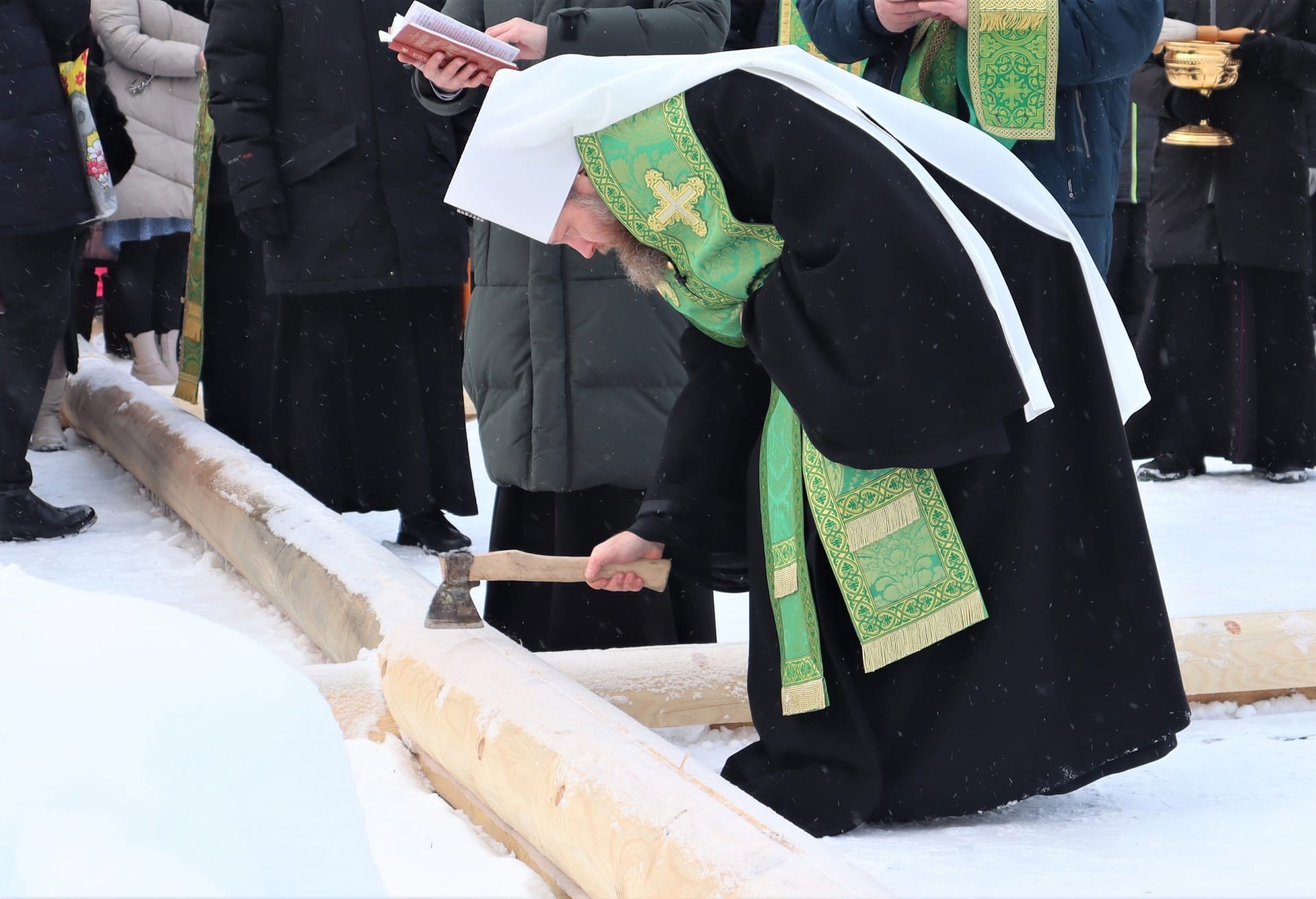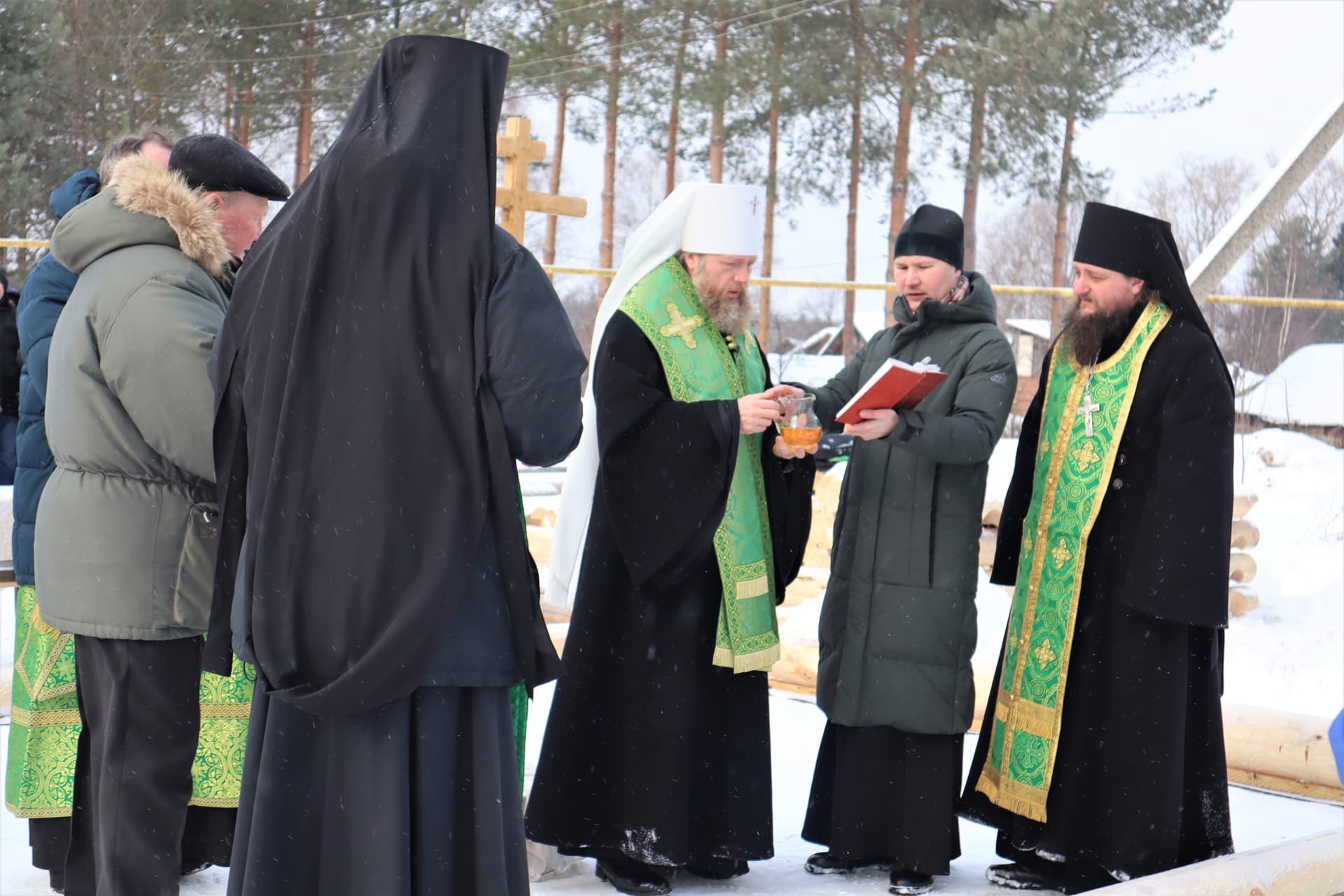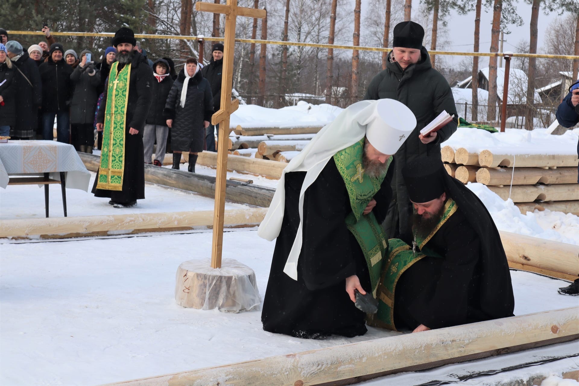 Чин на основание храма отслужил накануне глава вологодской Митрополии владыка Савва. После молитвы на место будущего алтаря был помещён православный крест, окроплённый святой водой. Затем в основание обители был заложен первый камень и начаты работы по возведению фундамента. Митрополит также провёл символический ритуал благословления на строительство, ударив топором по четырём сторонам будущего здания.