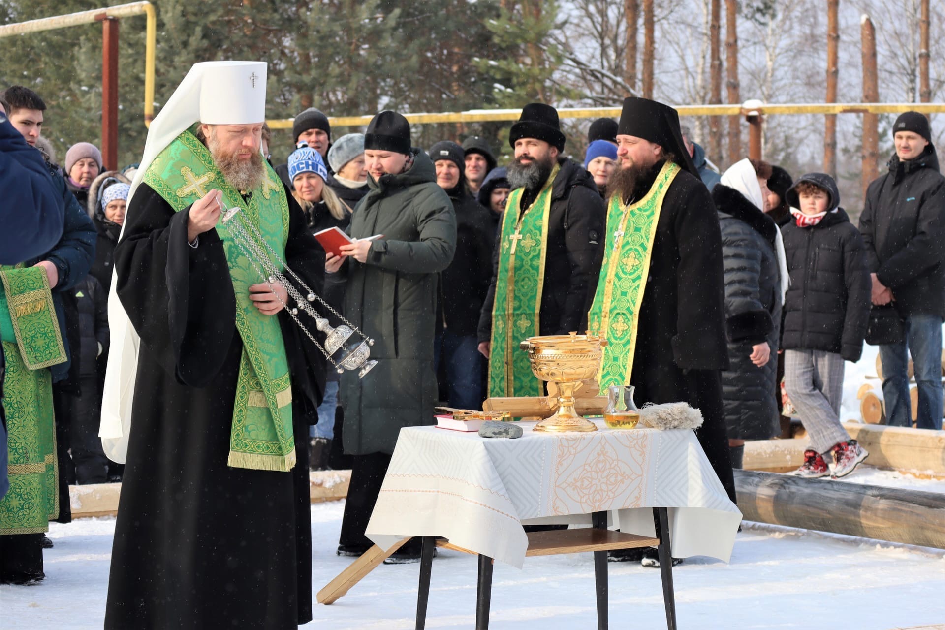 Накануне там прошёл чин на основание храма. Он будет носить имя преподобного Арсения Комельского. Это один из вологодских чудотворцев и основатель ныне уже не существующего Арсениево-Комельского монастыря. Жил святой при царе Василии III в XVI веке.