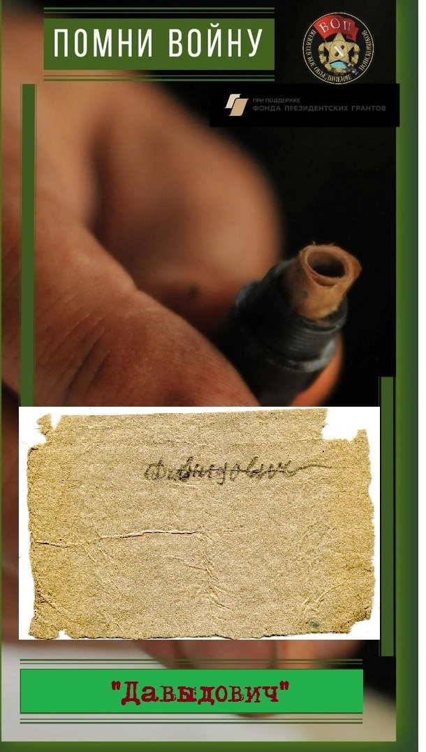 Имеется зачёркнутая надпись "Давыдович". К солдату, по всей видимости, отношения она не имеет. Поисковики просят специалистов, работающих с графическими программами, помочь в расшифровке.