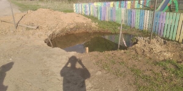 «Пенсионеры и семьи с детьми не только сидят без воды, но ещё две ямы вскопали возле детской площадки! Ямы по 2 метра, нет ограждений, земля проваливает из под ног! Родители боятся отпускать детей на площадку!», – поделились местные жители.