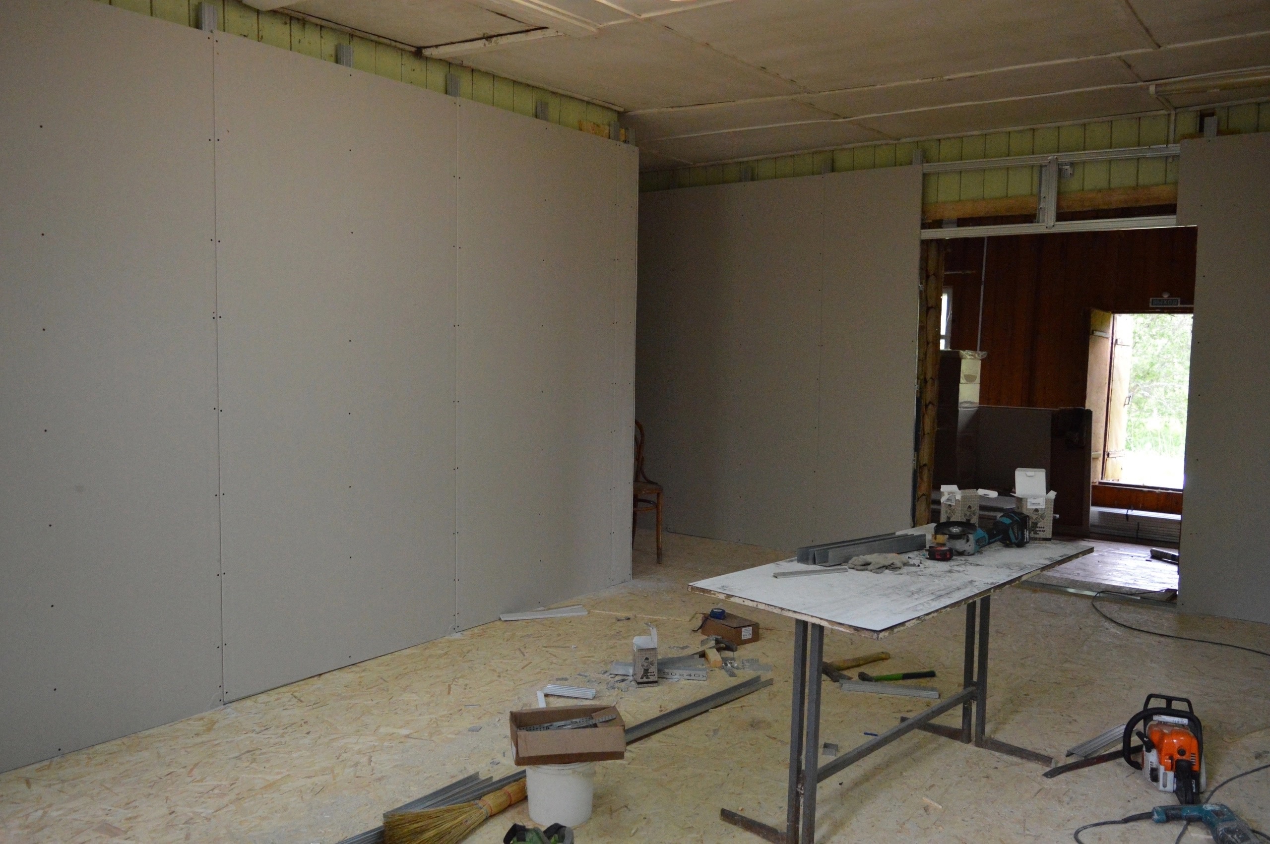 Фундамент сельского клуба уже благополучно заменён. Также строители обновили пол и частично обшили стены гипсокартоном. В настоящее время бригады приступили к обновлению внешней кровли здания. Параллельно с этим ведутся работы и внутри помещений. Отметим, что капремонт дома культуры выполняется в рамках исполнения градостроительных решений губернатора, - сообщает ГТРК «Вологда» со ссылкой на главу округа Александра Титова.