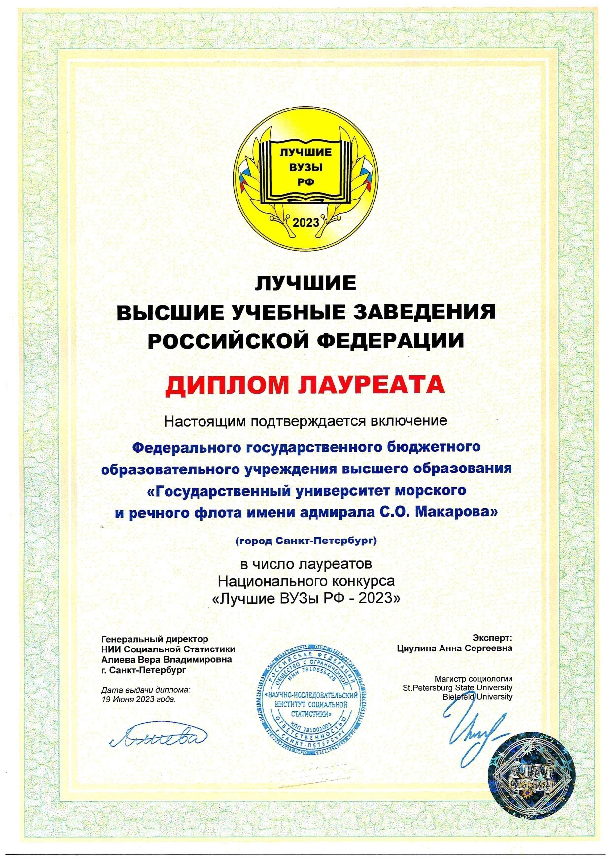 Образовательное учреждение попало в число лауреатов федерального конкурса «Лучшие ВУЗы РФ-23».