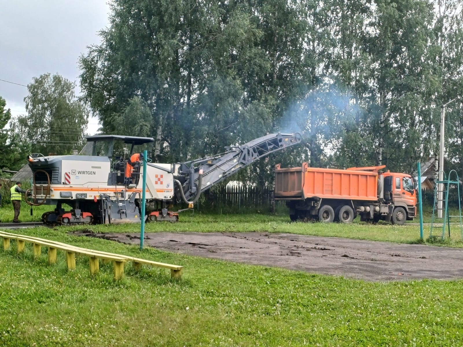 В настоящее время рабочие срезают старое покрытие со стадиона. Вскоре там появятся специальные беговые дорожки, отвечающие всем спортивным стандартам. Также в порядок будет приведён и газон – вместо старого грунтового появится современное искусственное поле. Помимо прочего, на стадионе будут заменены практически все спортивные снаряды, появятся уличные тренажёры и турники. В трибунной зоне заменят старые скамьи.