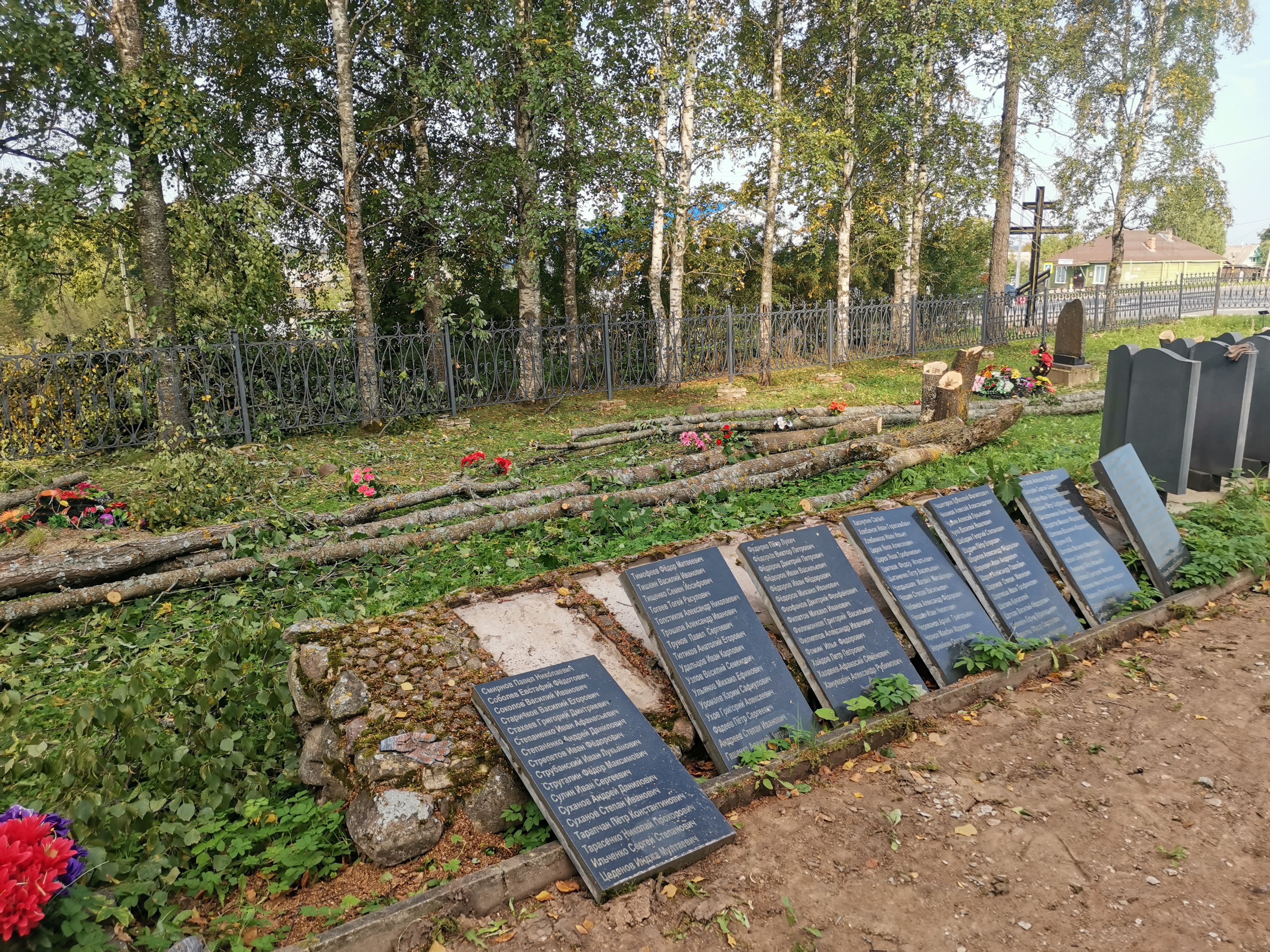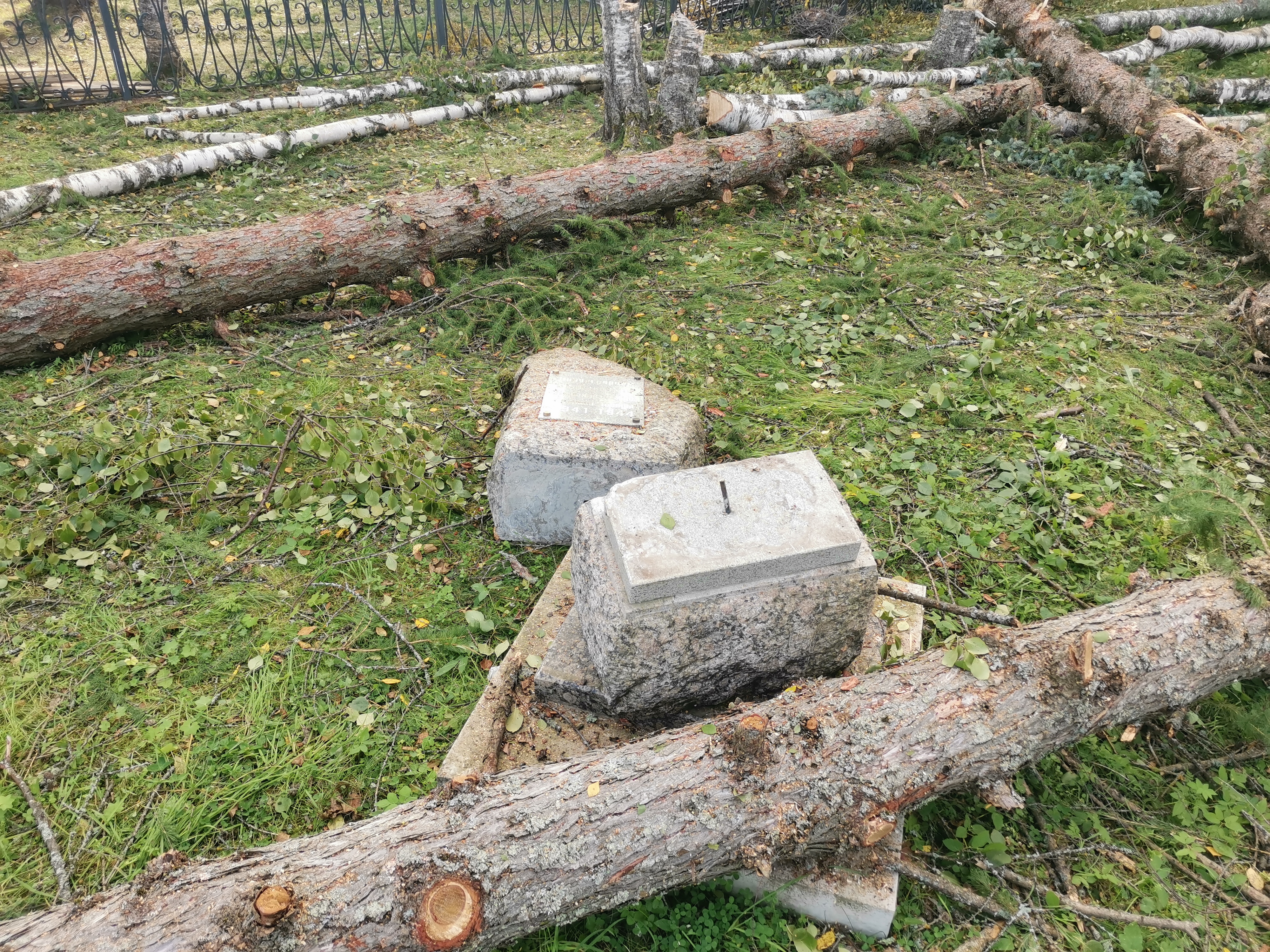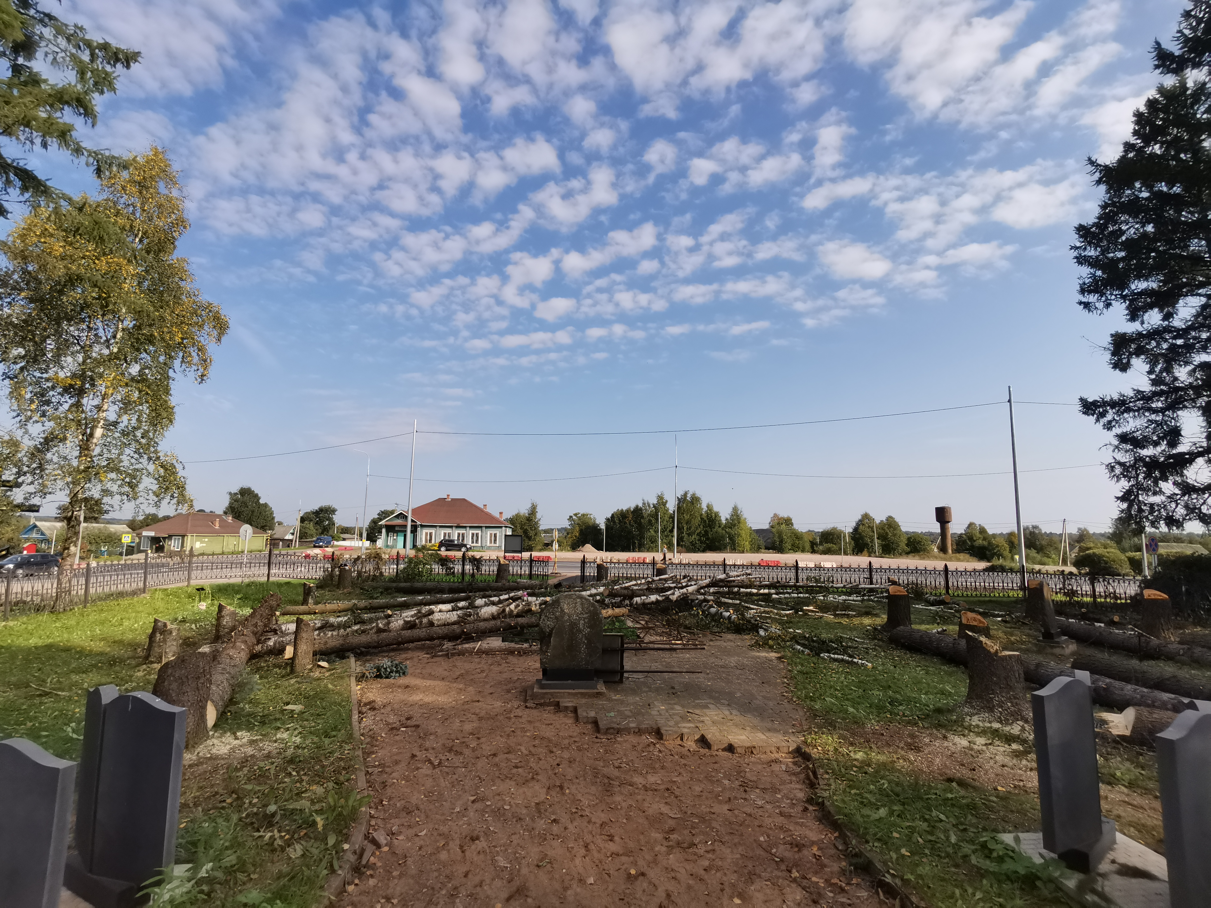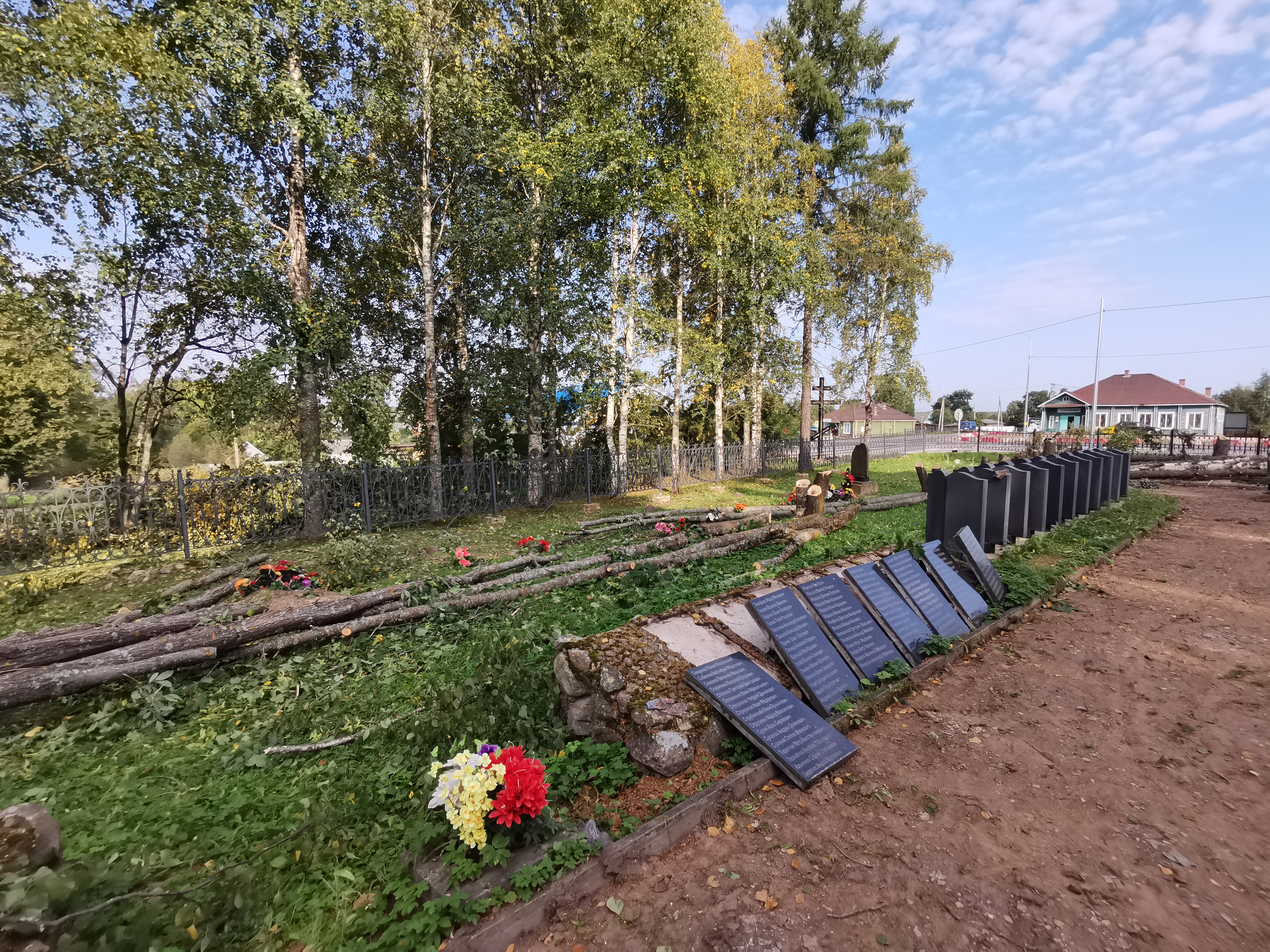 Там, где расположены воинские захоронения, оказались повалены все деревья. При этом часть стволов упала прямо на монументы, повредив некоторые памятники и надгробные плиты. Также при транспортировке поваленных деревьев на могилах остались траншеи. Сокрушаются жители села и по поводу самого факта вырубки, сообщает ГТРК «Вологда».