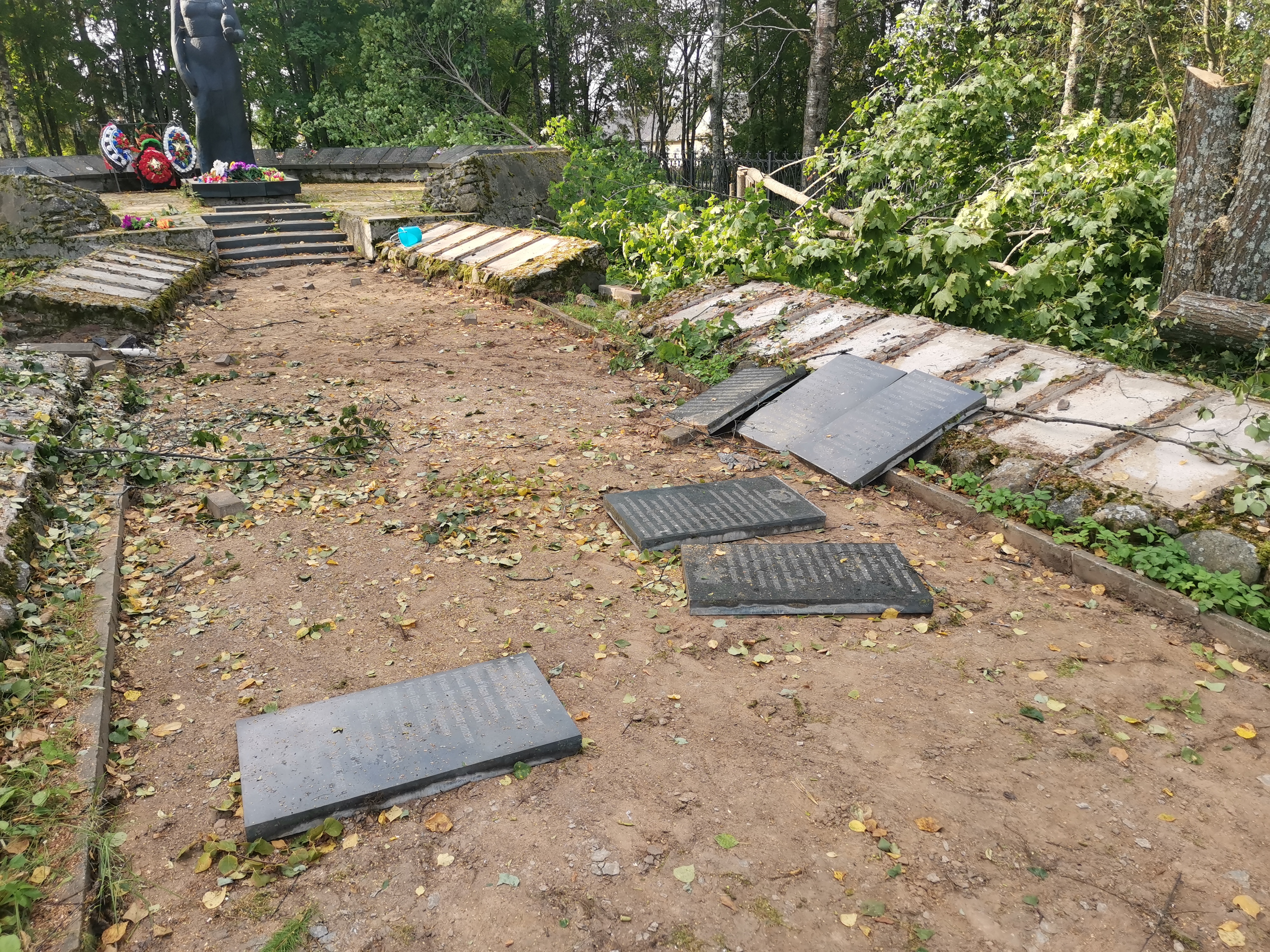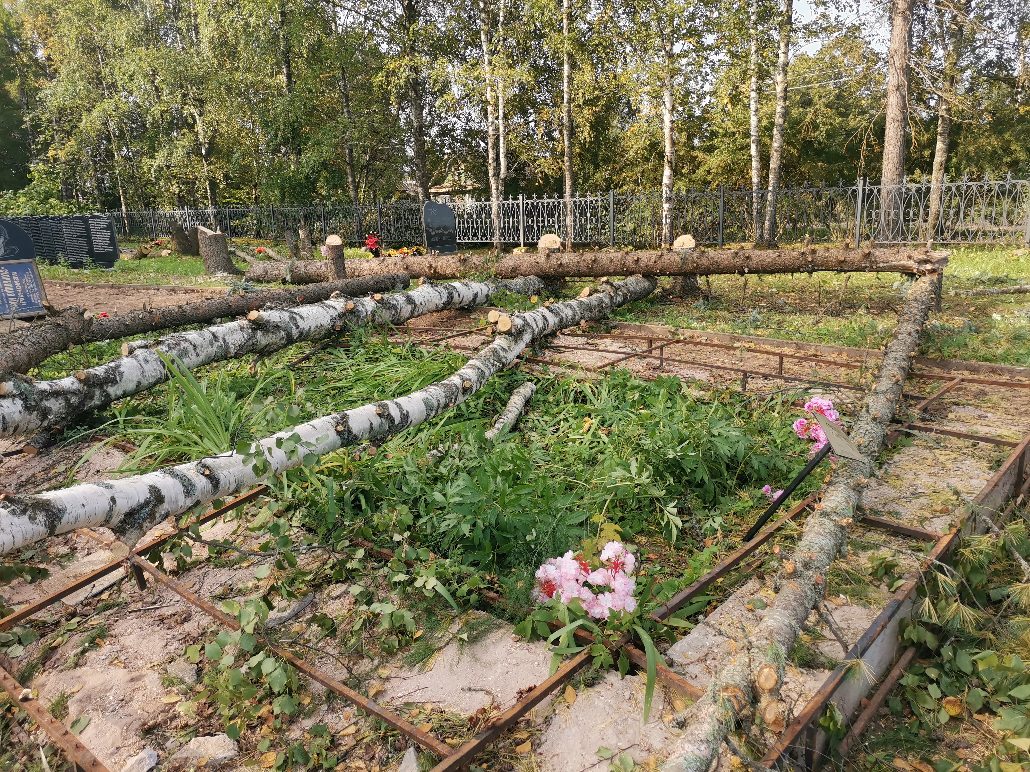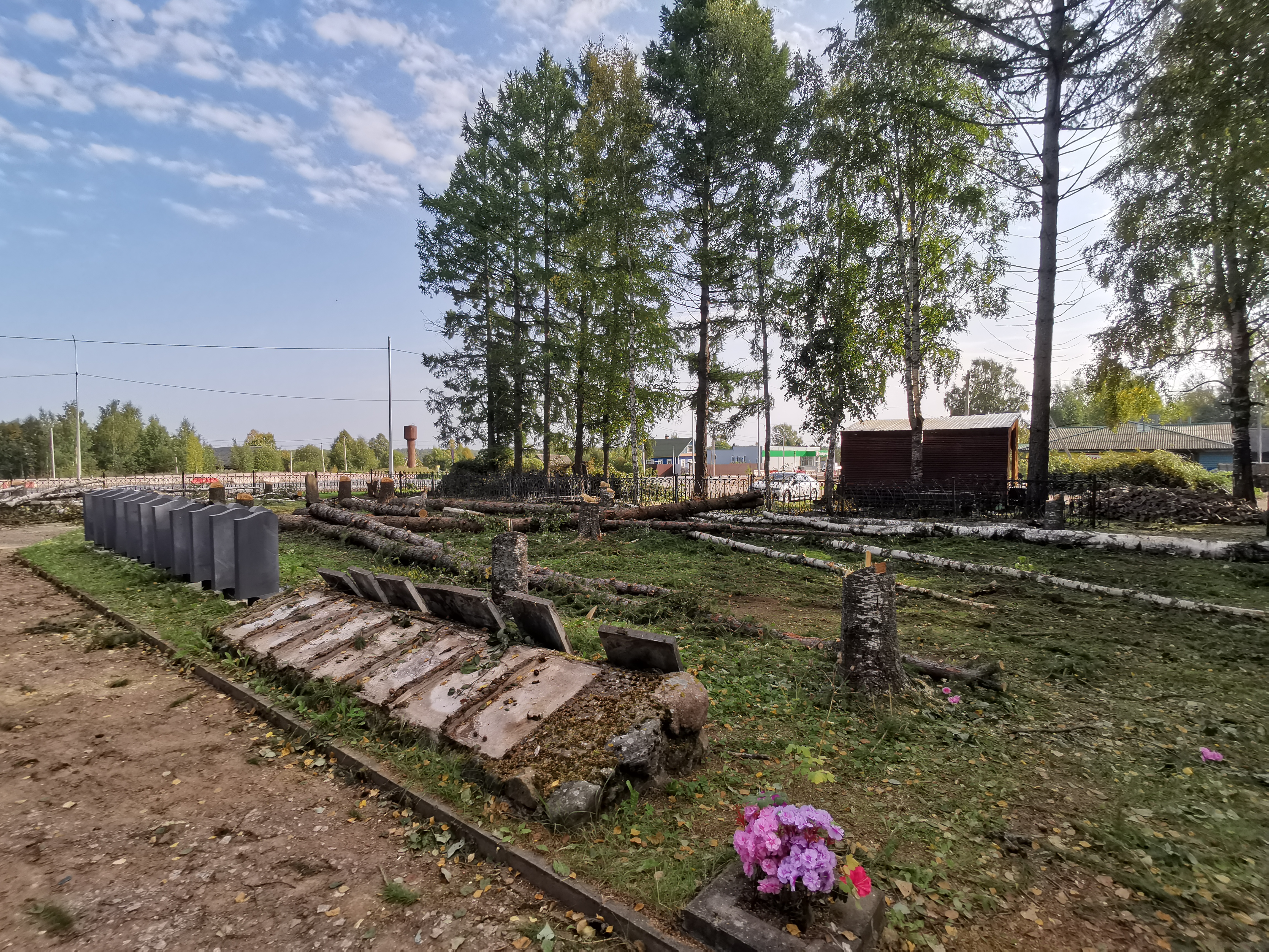 Там, где расположены воинские захоронения, оказались повалены все деревья. При этом часть стволов упала прямо на монументы, повредив некоторые памятники и надгробные плиты. Также при транспортировке поваленных деревьев на могилах остались траншеи. Сокрушаются жители села и по поводу самого факта вырубки, сообщает ГТРК «Вологда».