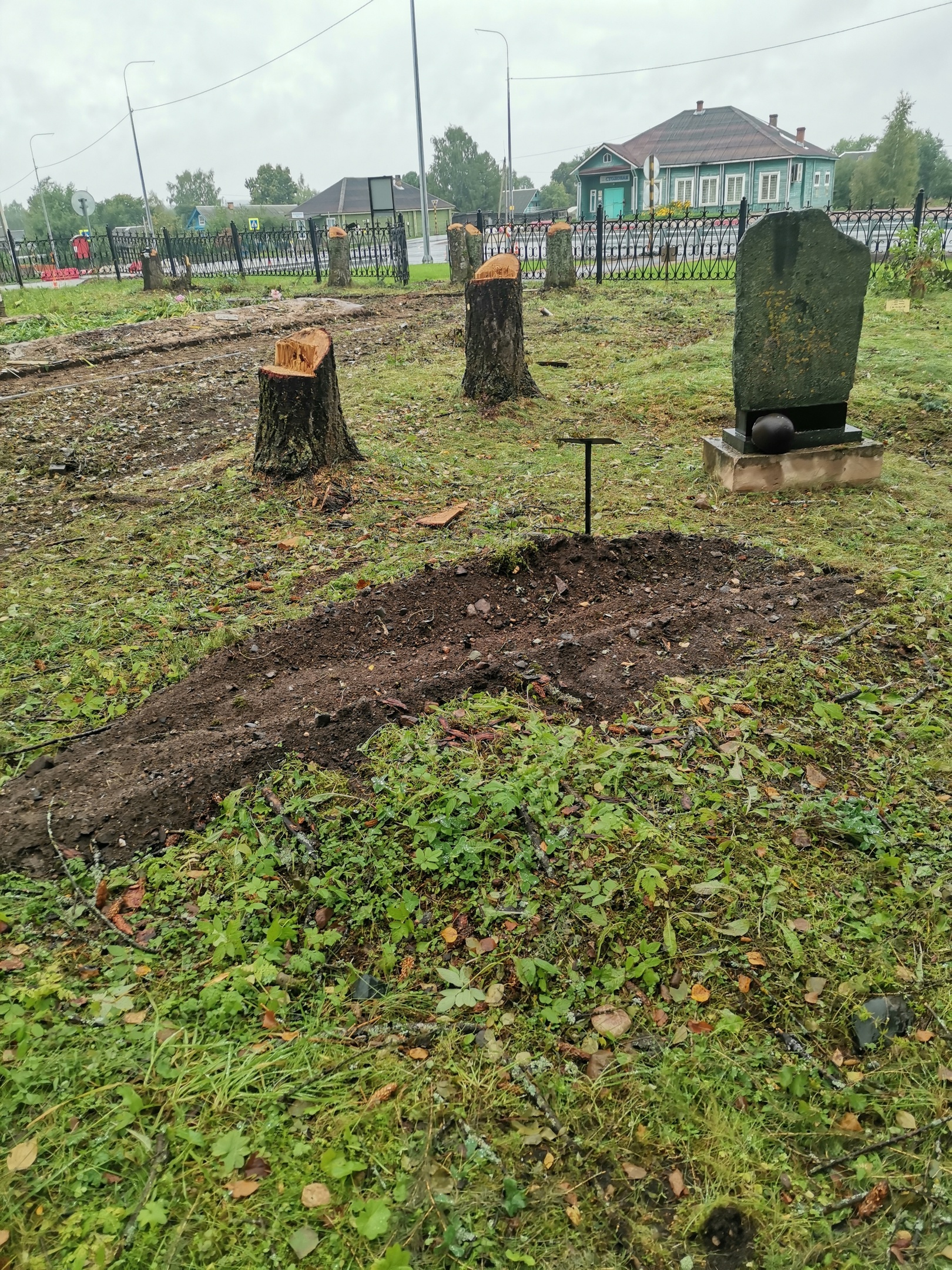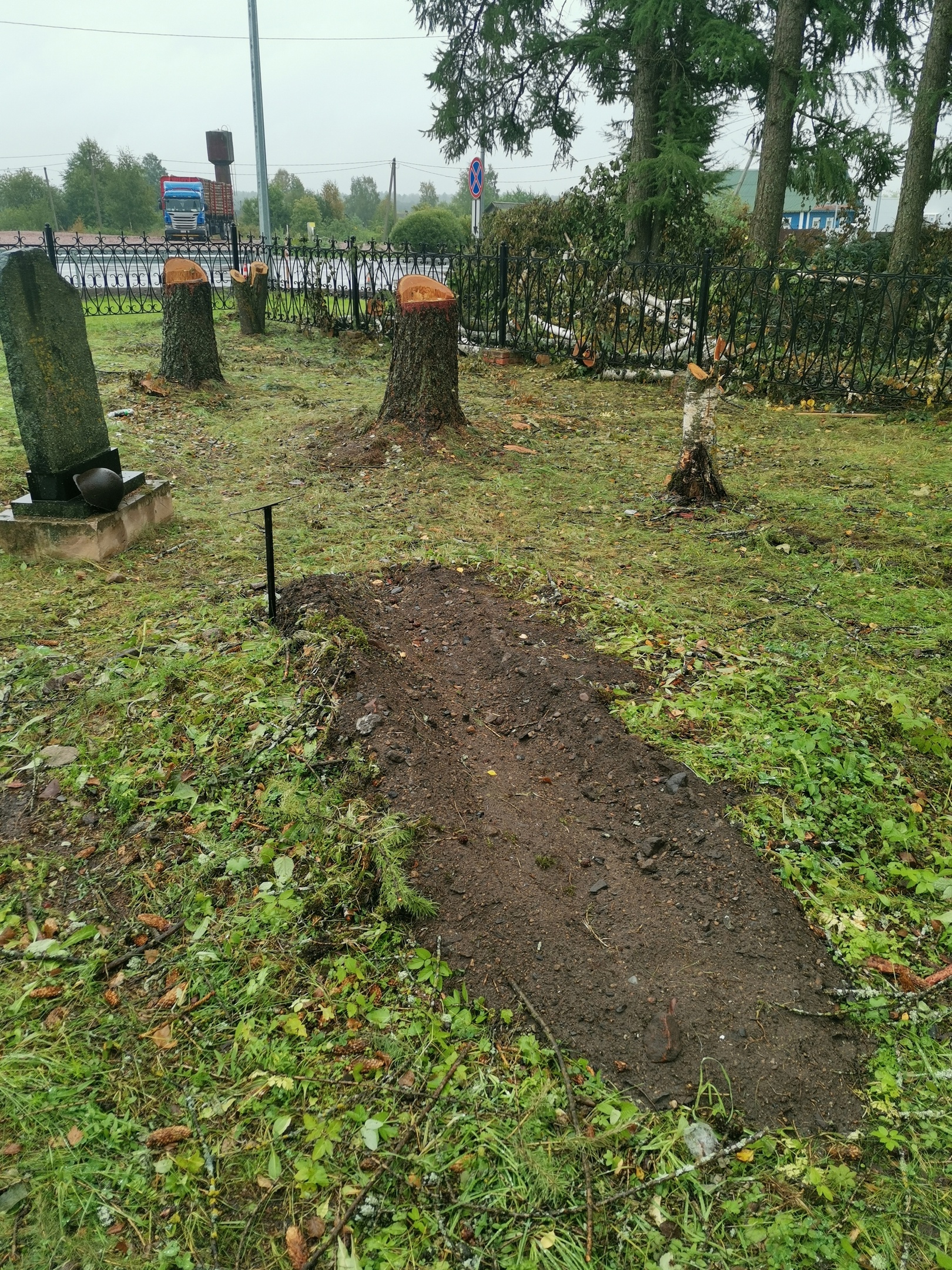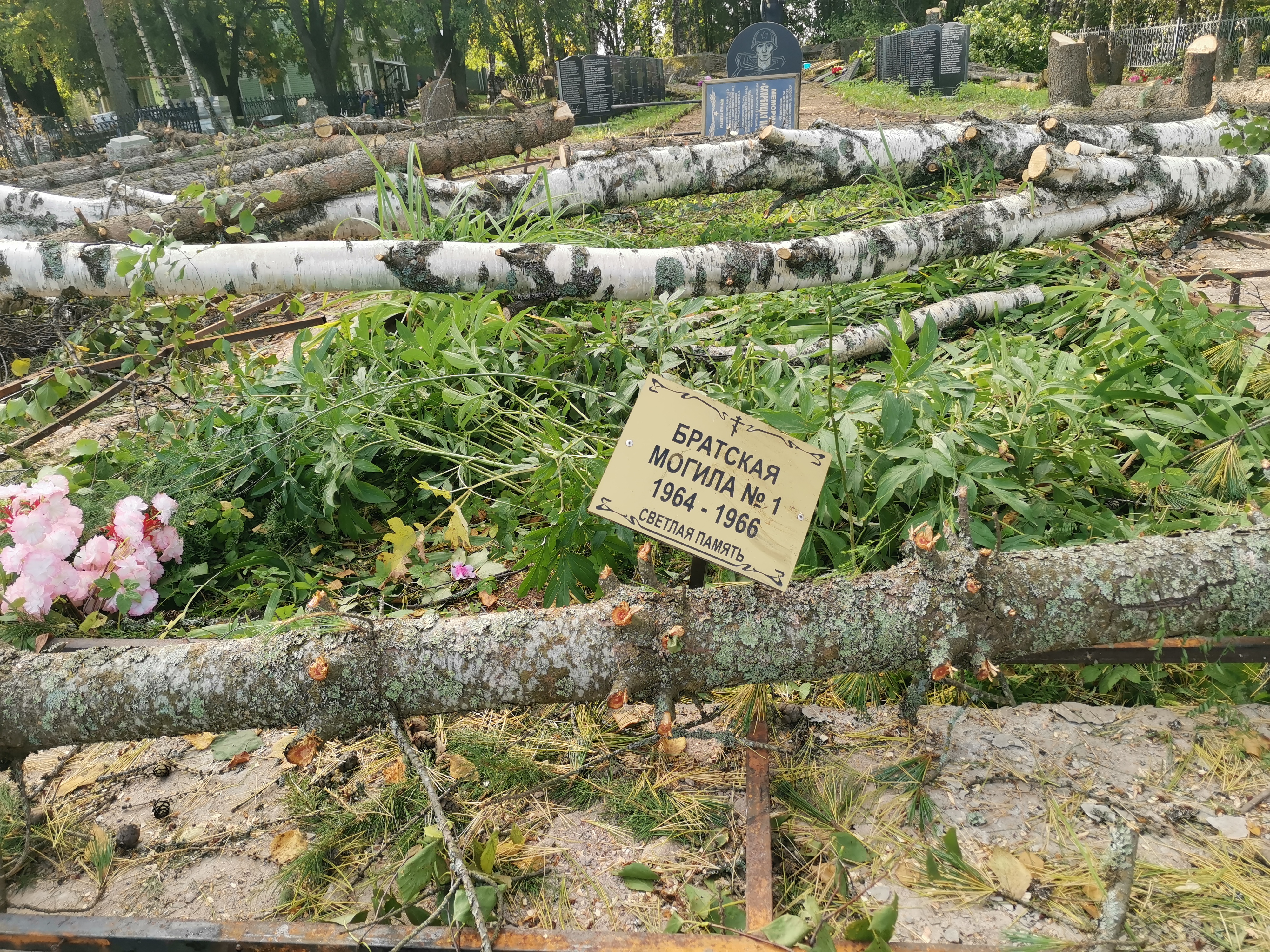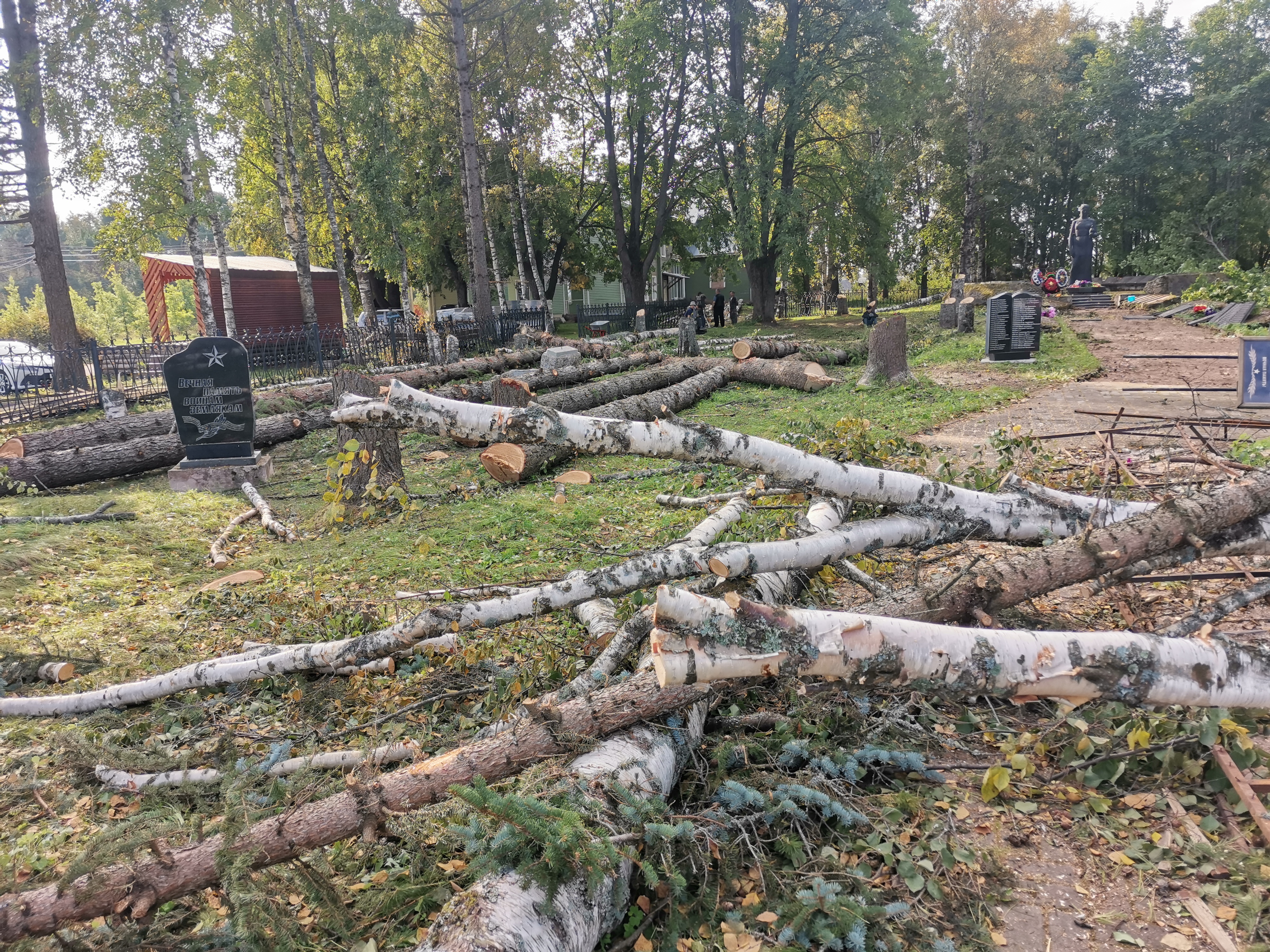 Там, где расположены воинские захоронения, оказались повалены все деревья. При этом часть стволов упала прямо на монументы, повредив некоторые памятники и надгробные плиты. Также при транспортировке поваленных деревьев на могилах остались траншеи. Сокрушаются жители села и по поводу самого факта вырубки, сообщает ГТРК «Вологда».