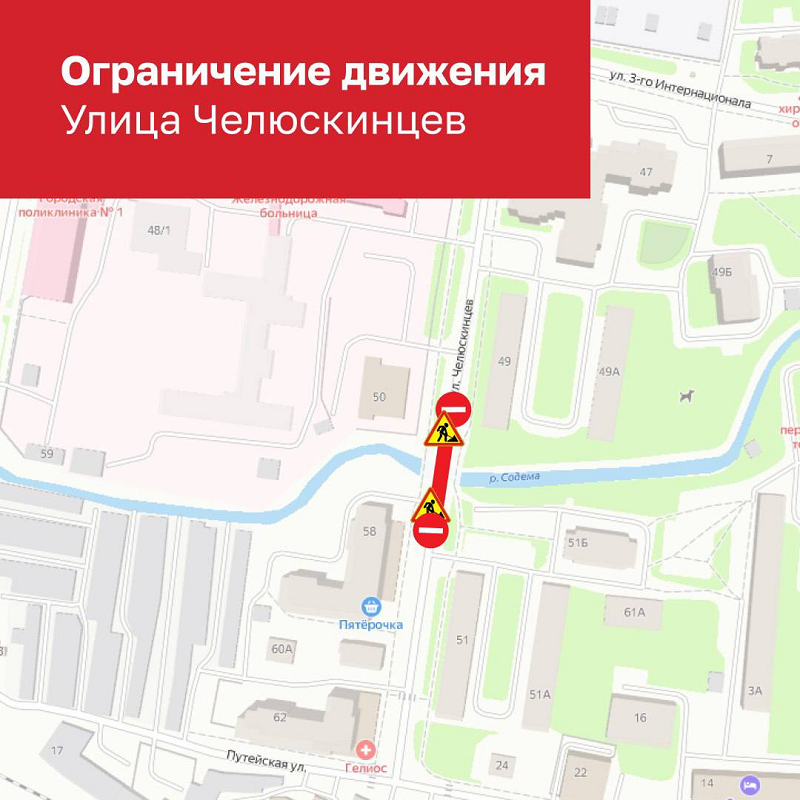 Объехать ремонтируемый участок на улице Челюскинцев можно маршруту: