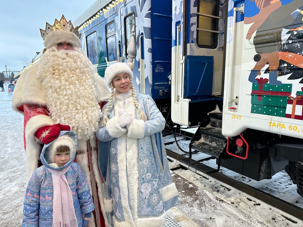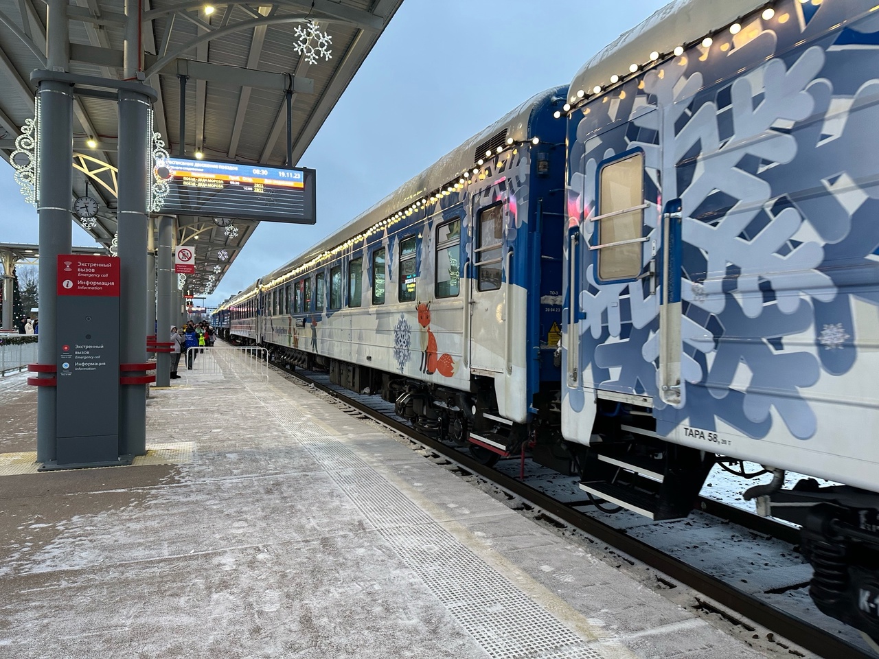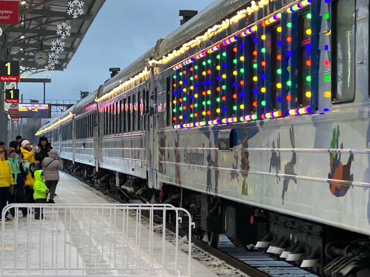 Сегодня в Великий Устюг прибыл поезд Деда Мороза. В честь 25-летия проекта и резиденции состав обновлен. В этом году "изюминкой" стал кукольный театр, который занимает целый вагон. По традиции в состав входит кафе, резиденция Деда Мороза, сувенирная лавка и многие другие пространства. Поезд в этом году невероятно длинный. Посетить его смогут все желающие сегодня до 16:00. Далее поезд отправится в традиционное путешествие по стране и вернется в Великий Устюг лишь 13 января.