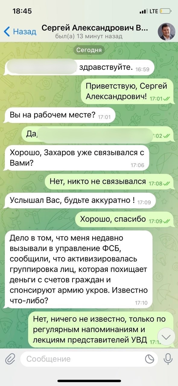 Злоумышленники создали в Telegram дублирующий аккаунт Сергея Воропанова.